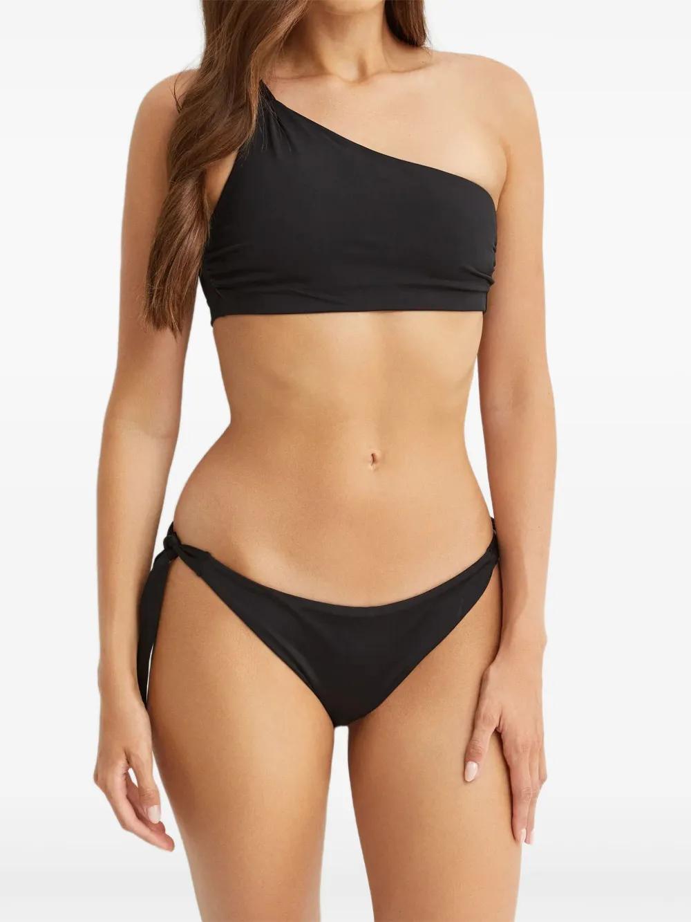 black one-shoulder design knot detail logo plaque Be mindful to try on swimwear over your own garments.