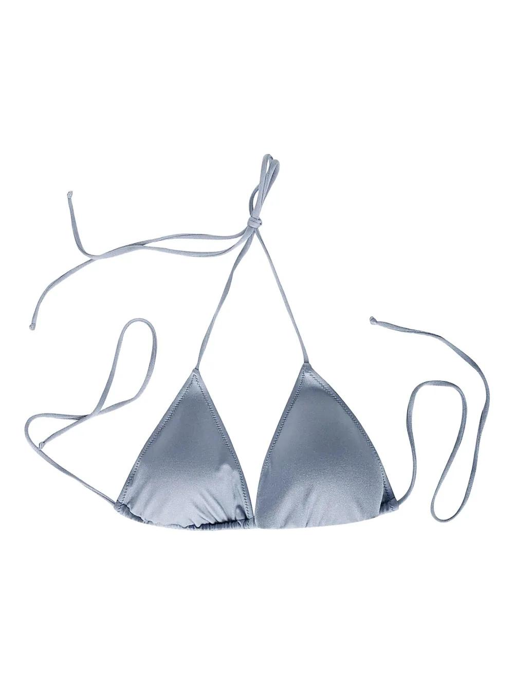 blue-grey triangle shape tie fastening Be mindful to try on swimwear over your own garments.