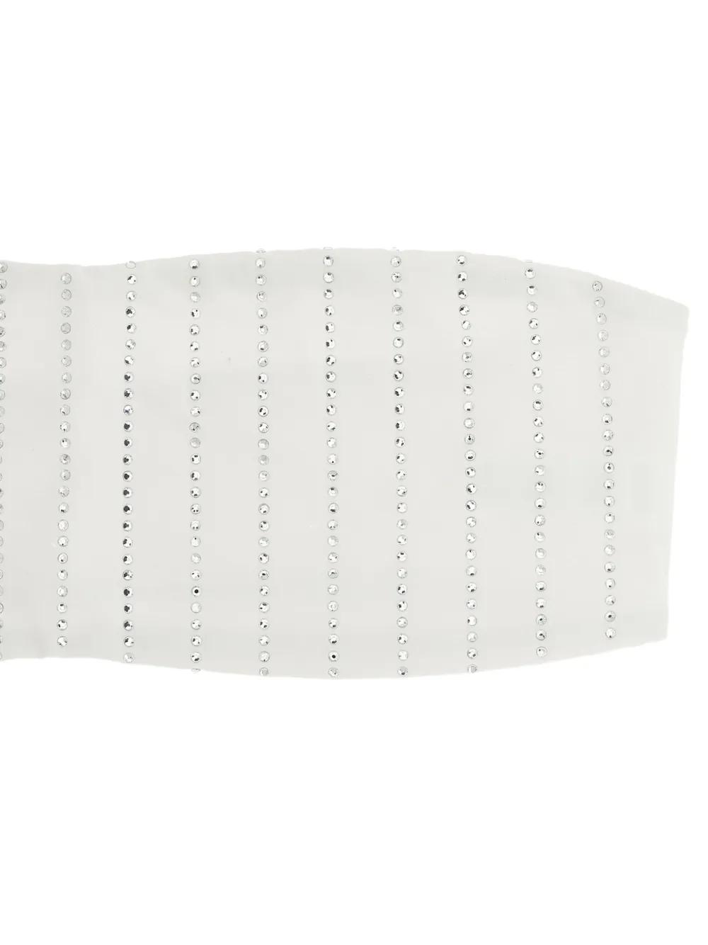 white rhinestone embellishment bandeau style Be mindful to try on swimwear over your own garments.