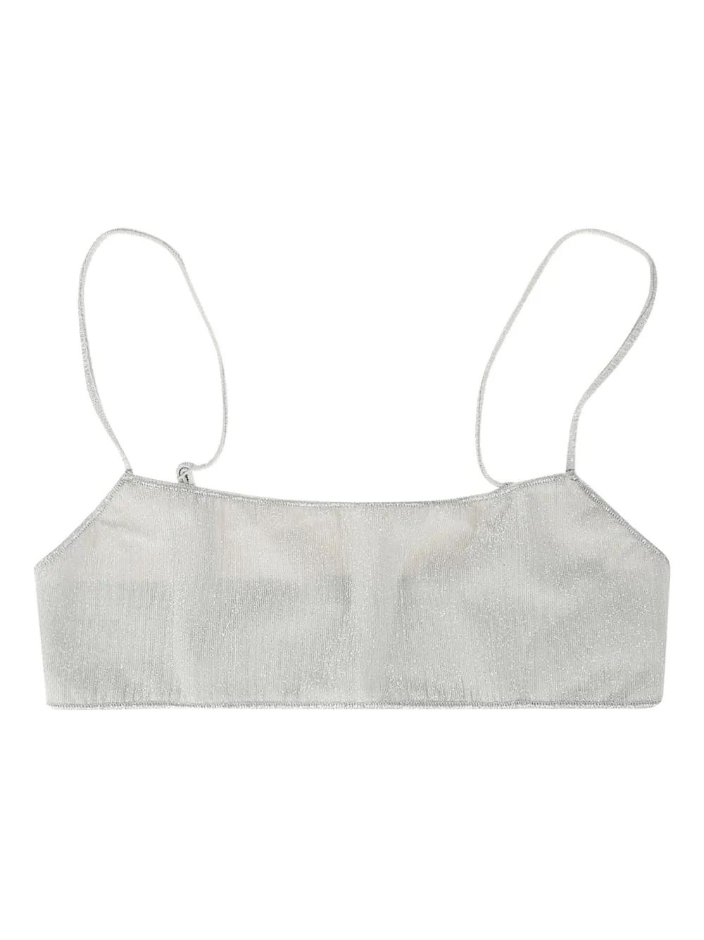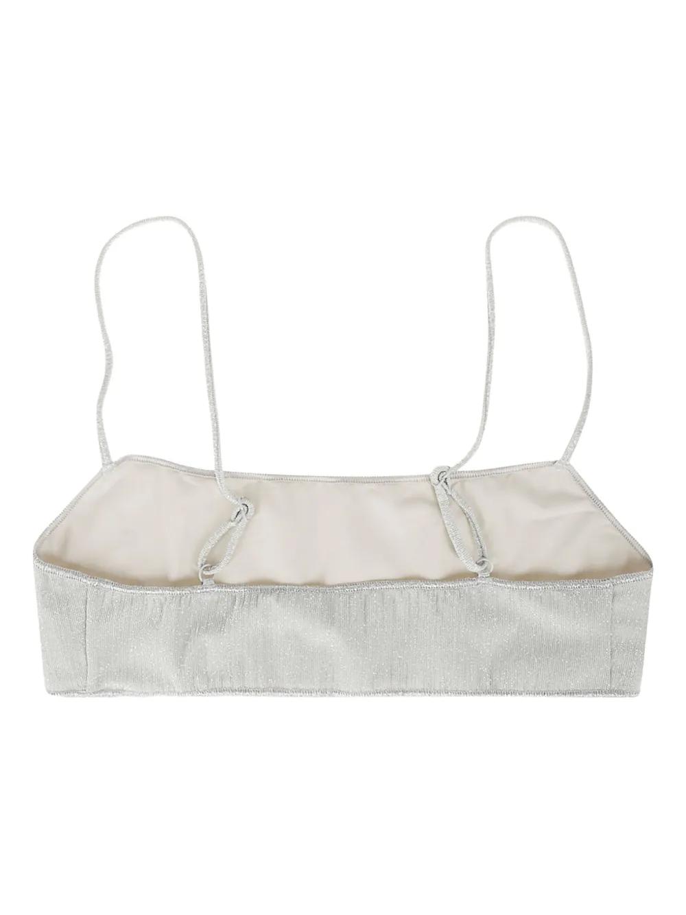 silver-tone lurex detail thin straps square neck straight hem close-fitting Be mindful to try on swimwear over your own garments.