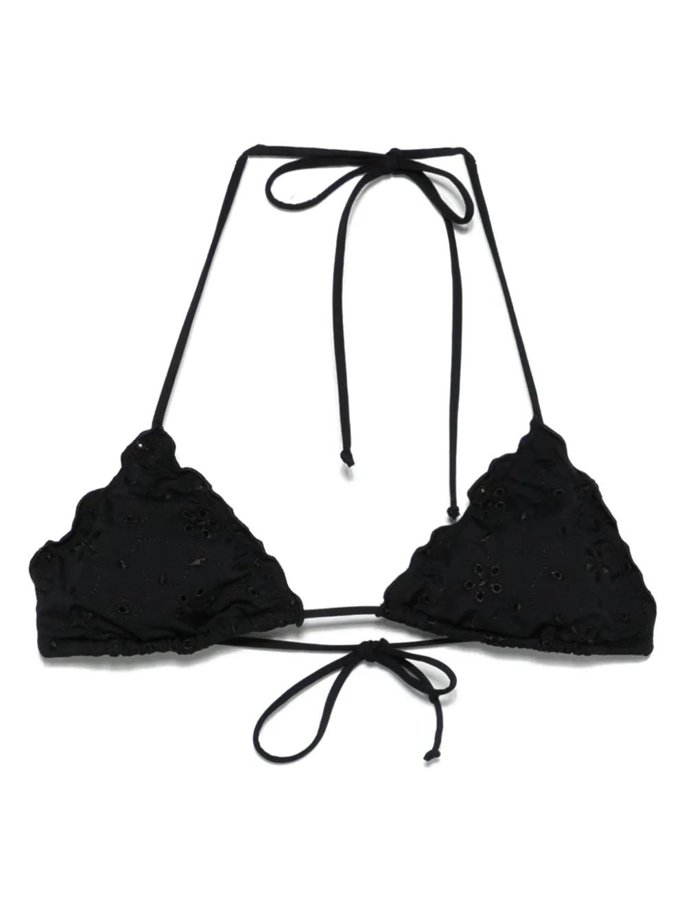 black self-tie fastening triangle cup Be mindful to try on swimwear over your own garments.