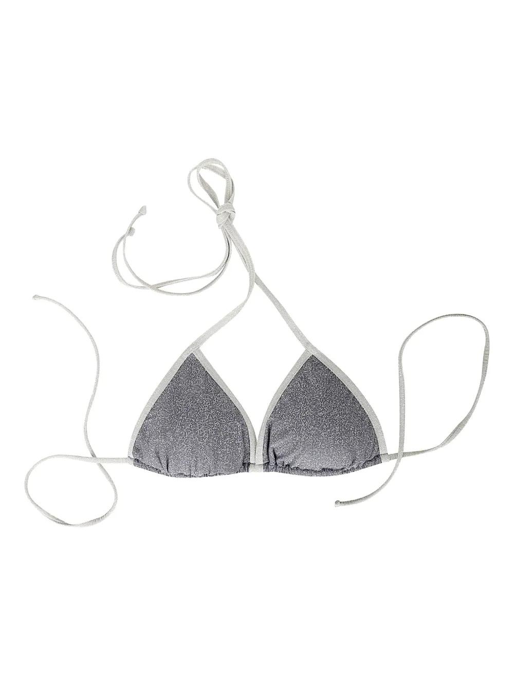silver lurex effect triangle shape adjustable straps shiny finish