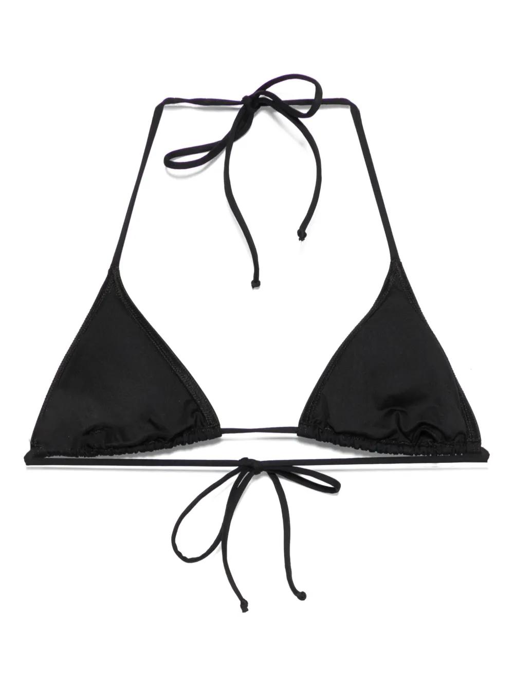 black halterneck tie fastening rear tie fastening triangle cup Be mindful to try on swimwear over your own garments.