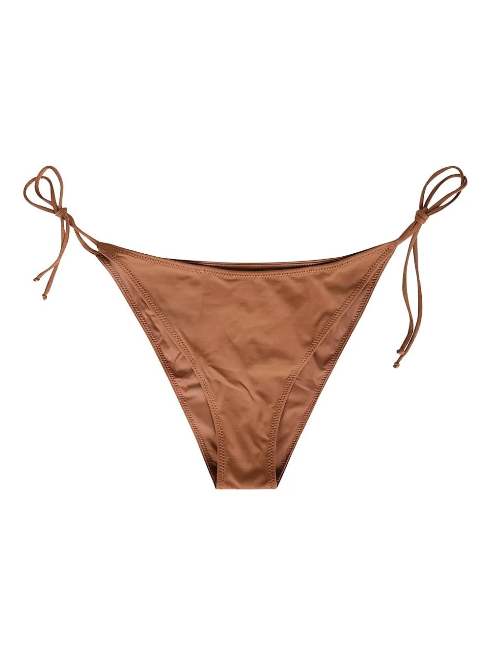 brown side-tie fastening flat seams Be mindful to try on swimwear over your own garments.