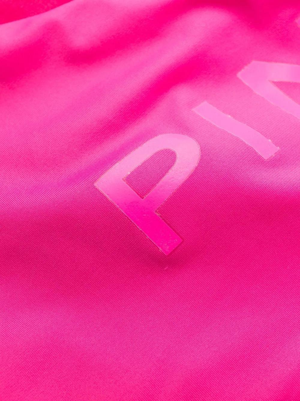 fuchsia pink stretch-design rubberised logo detail one-shoulder single shoulder strap Be mindful to try on swimwear over your own garments.