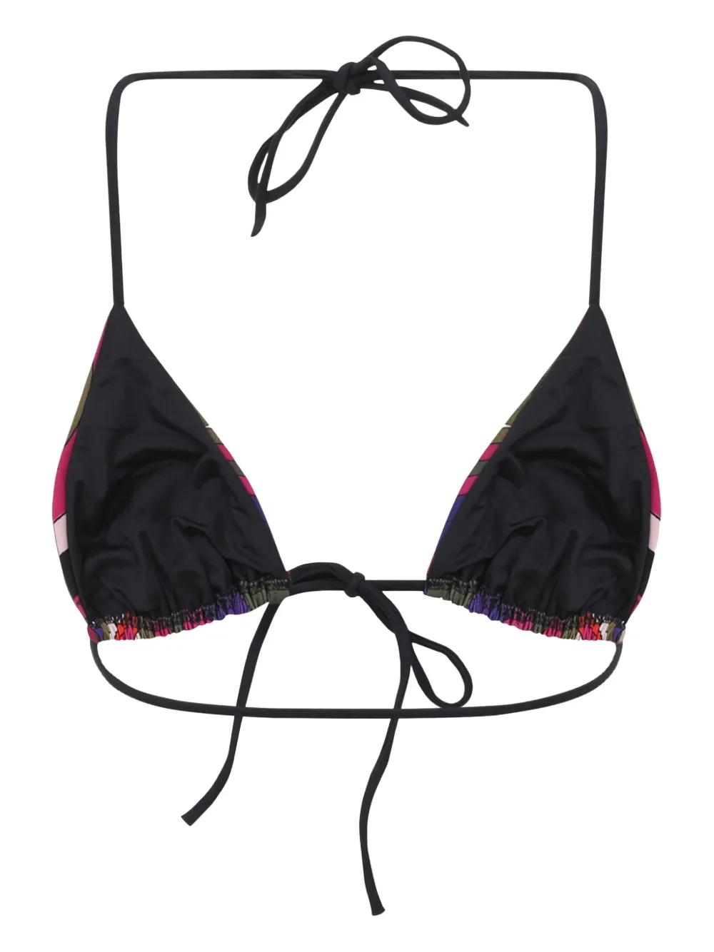 multicolor abstract print triangle shape rear tie fastening gathered detailing adjustable shoulder straps Be mindful to try on swimwear over your own garments.