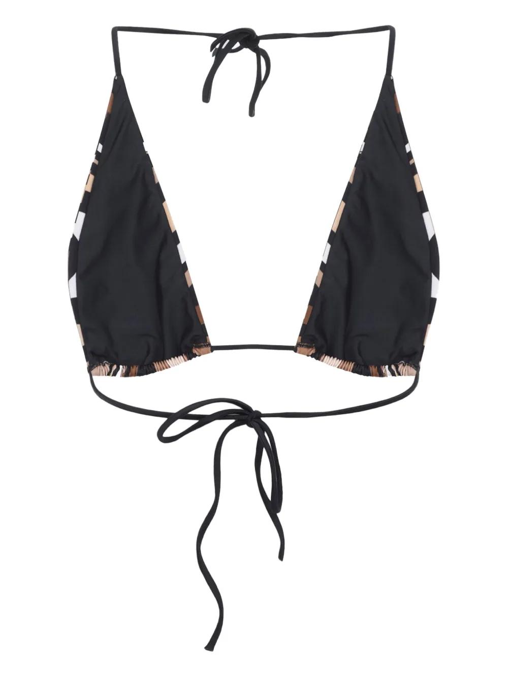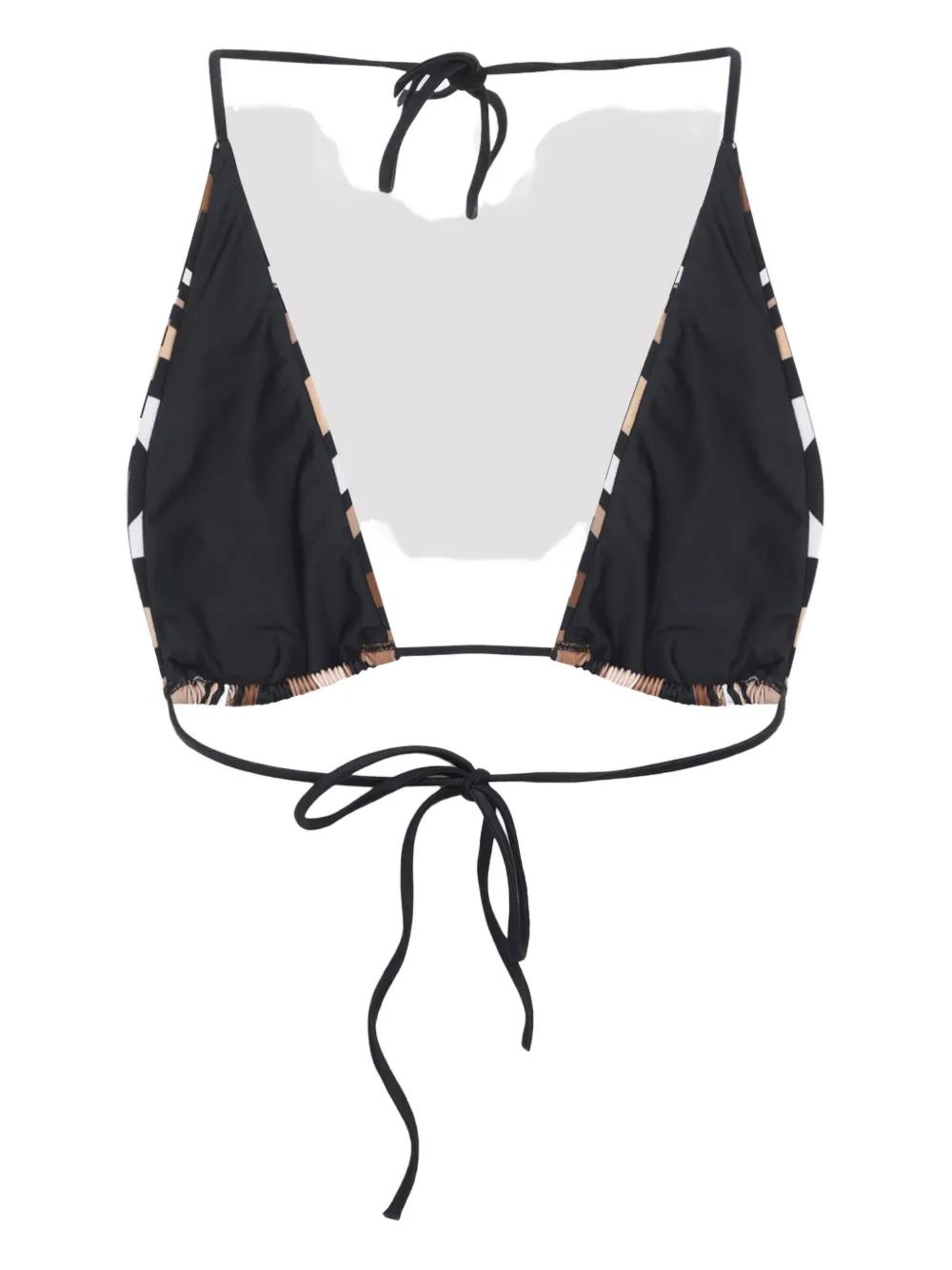black patterned tie fastening triangle cup Be mindful to try on swimwear over your own garments.