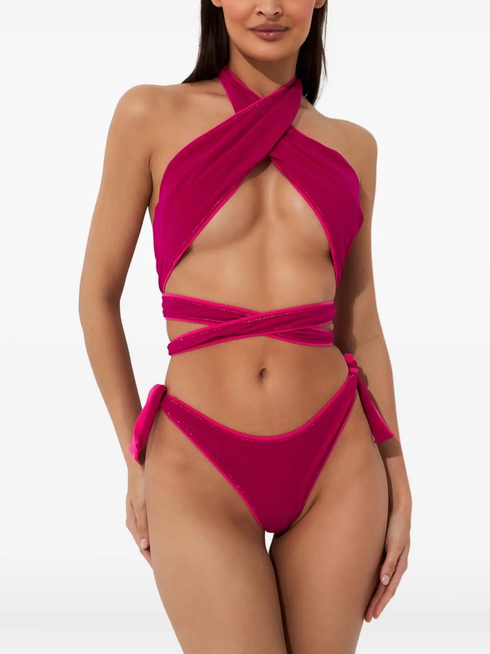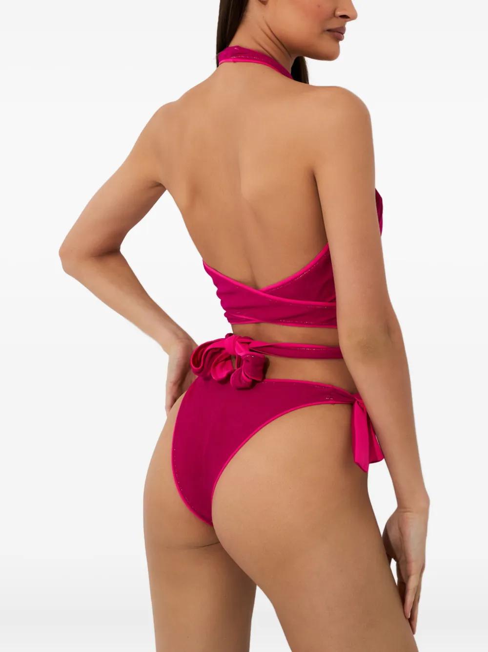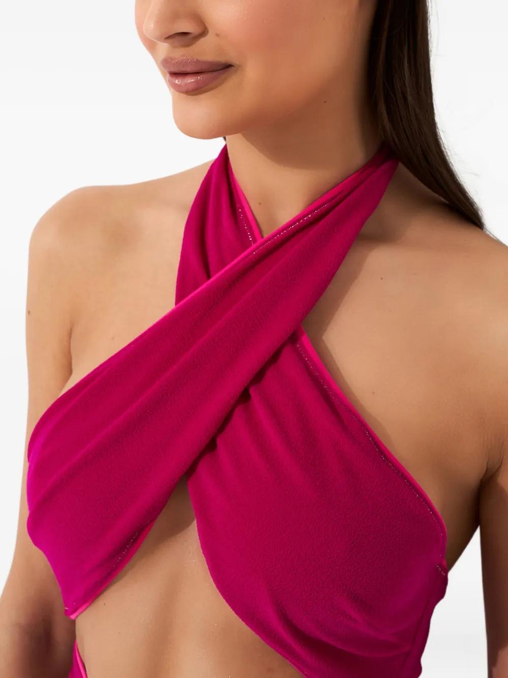 pink halterneck ties fastening side ties Be mindful to try on swimwear over your own garments.