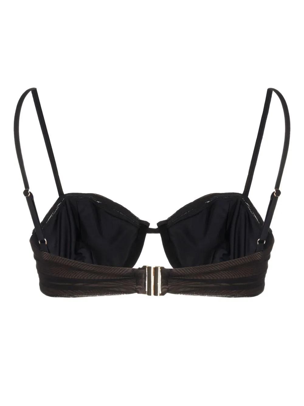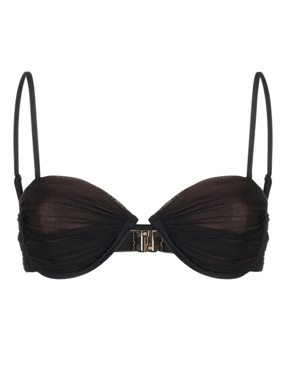 black recycled polyester mesh panelling underwire cup ruched detailing adjustable spaghetti straps rear clasp fastening Be mindful to try on swimwear over your own garments.