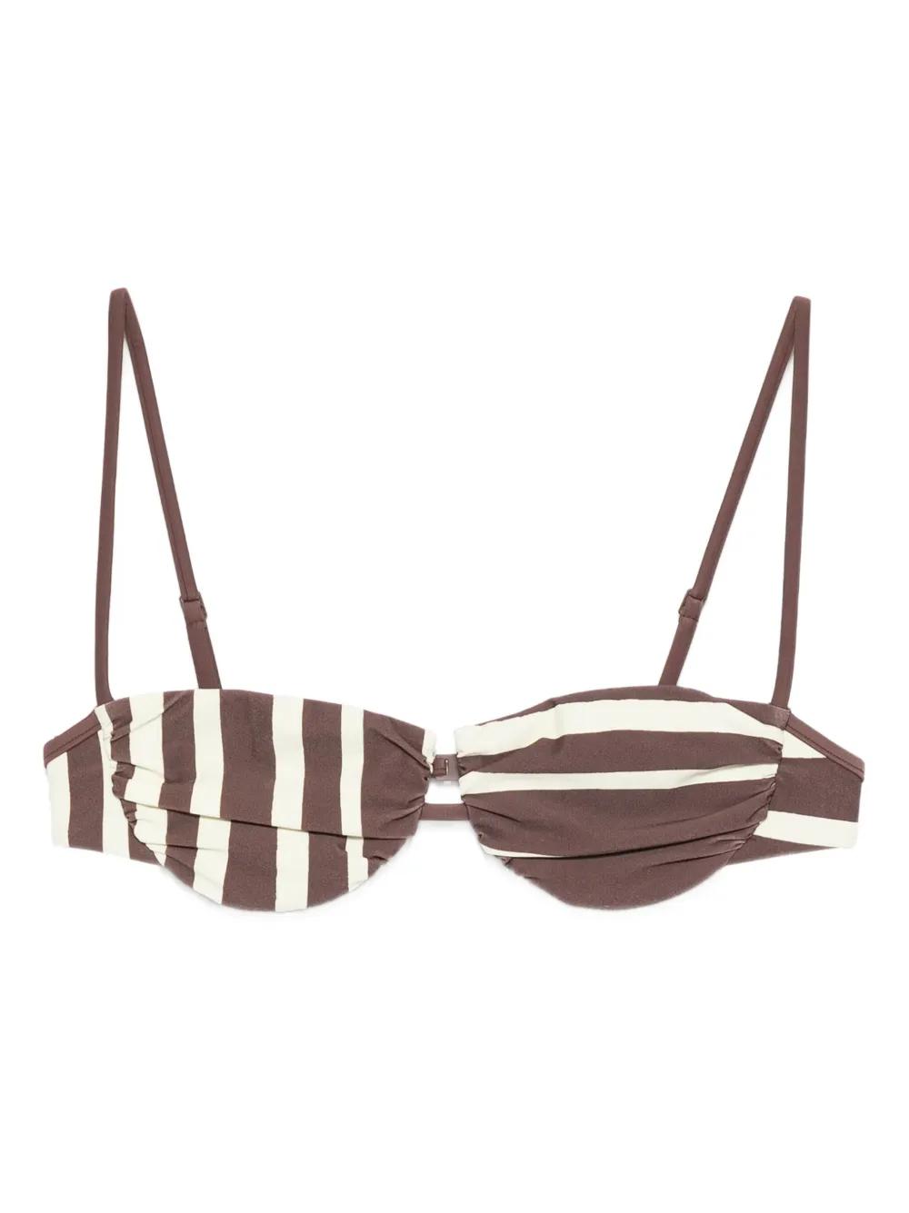 brown striped balconette style adjustable straps clasp fastening Be mindful to try on swimwear over your own garments.
