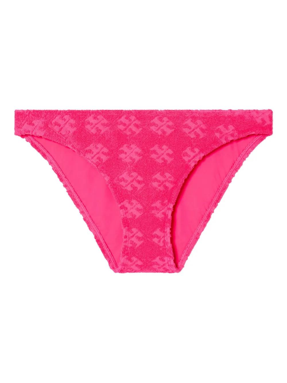 hot pink all-over logo print elasticated waistband low-rise cut fully lined Be mindful to try on swimwear over your own garments.