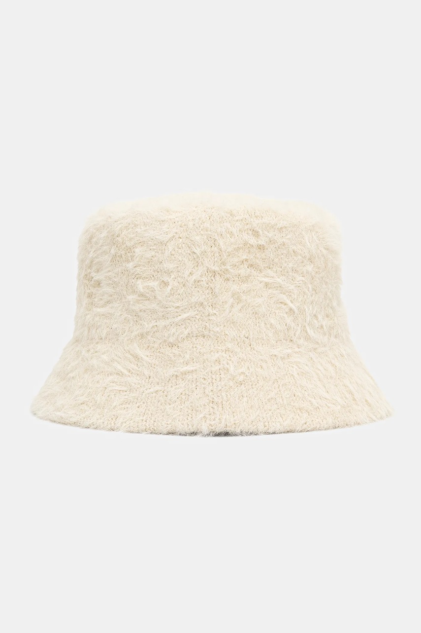 white virgin wool cable knit round crown ribbed panelling turn-up brim embroidered logo to the front unlined