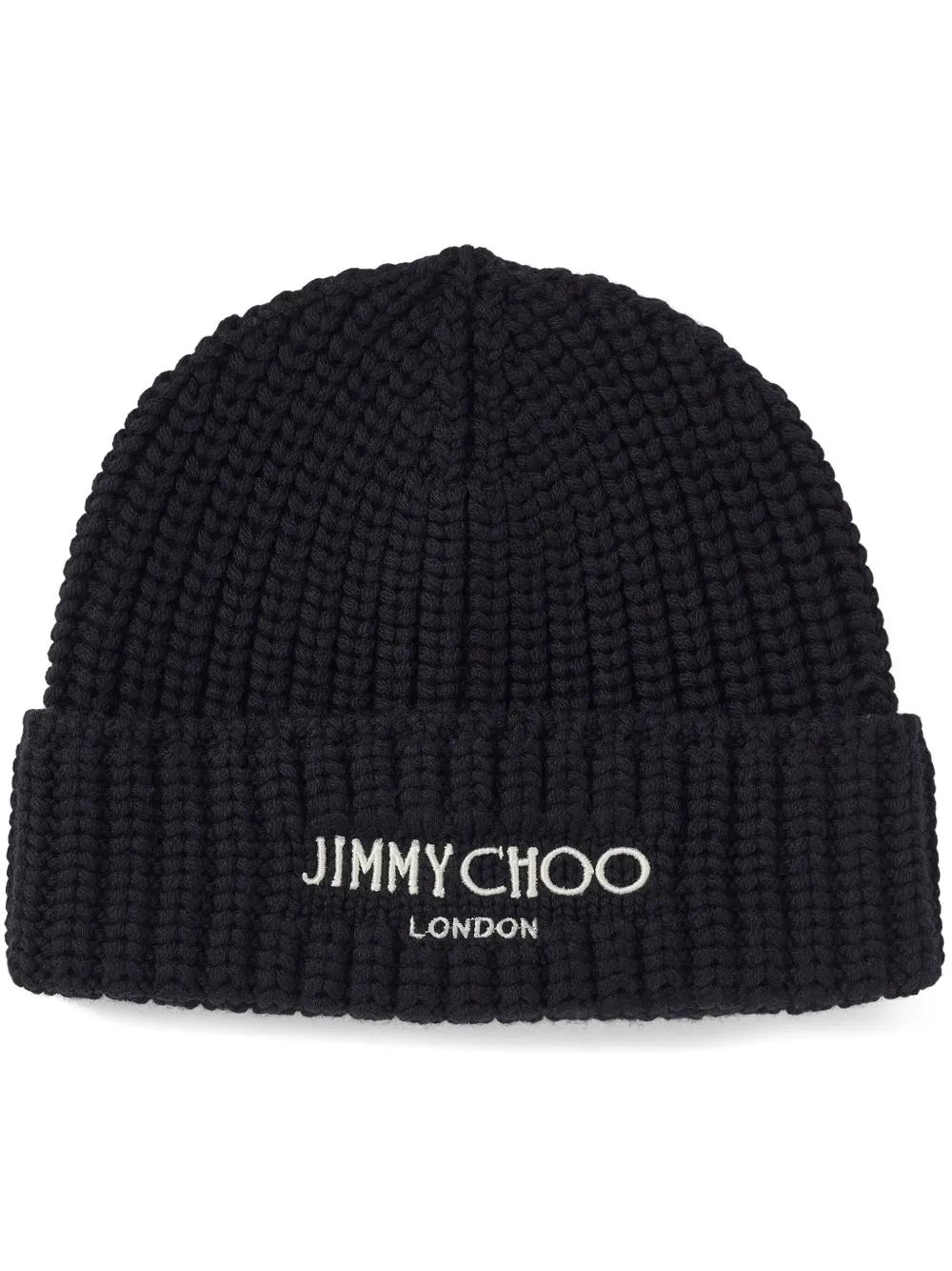 Jimmy Choo logo-embroidered ribbed-knit beanie - Black