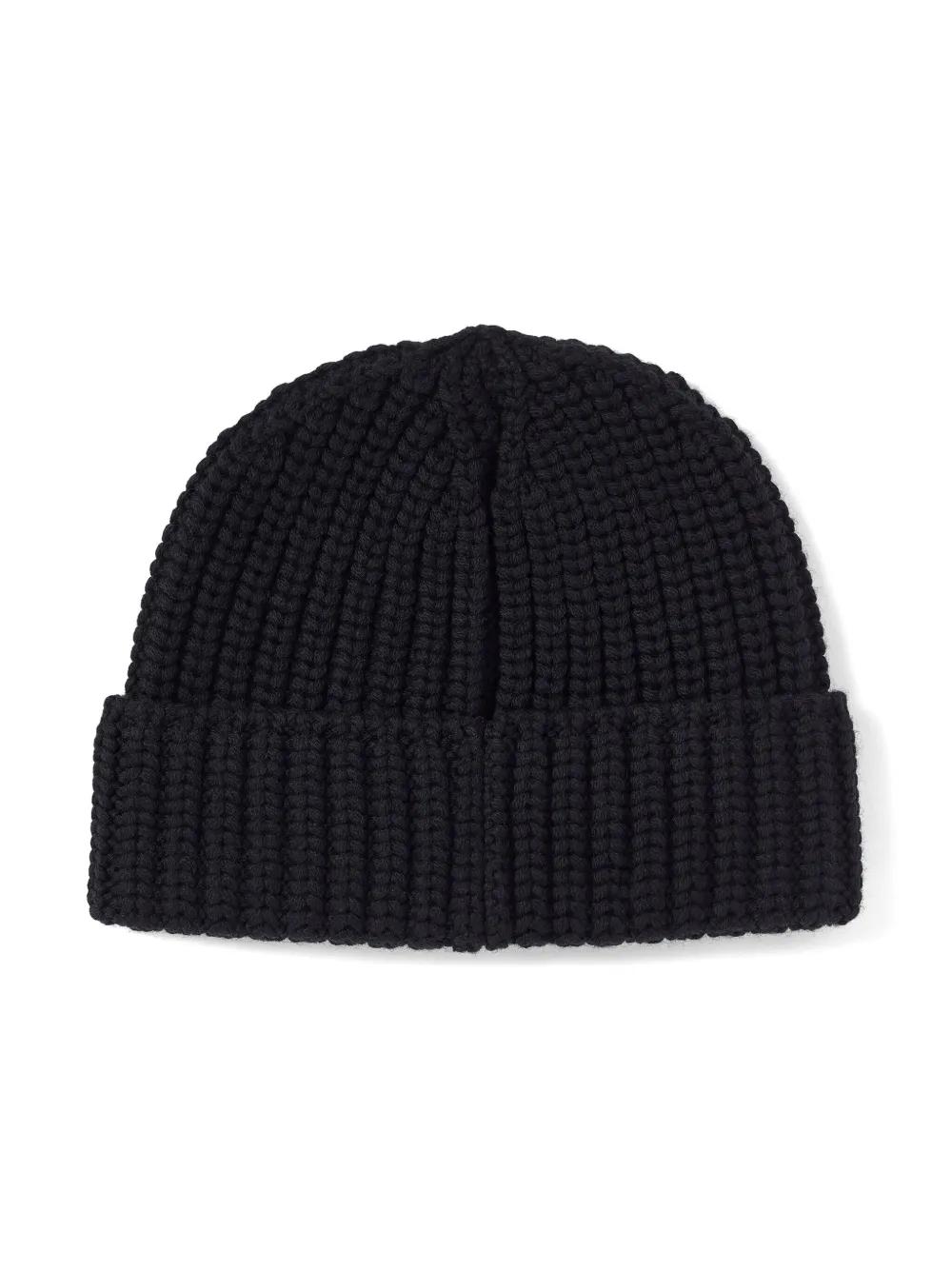 black virgin wool chunky ribbed knit embroidered logo to the front slip-on style turn-up hem