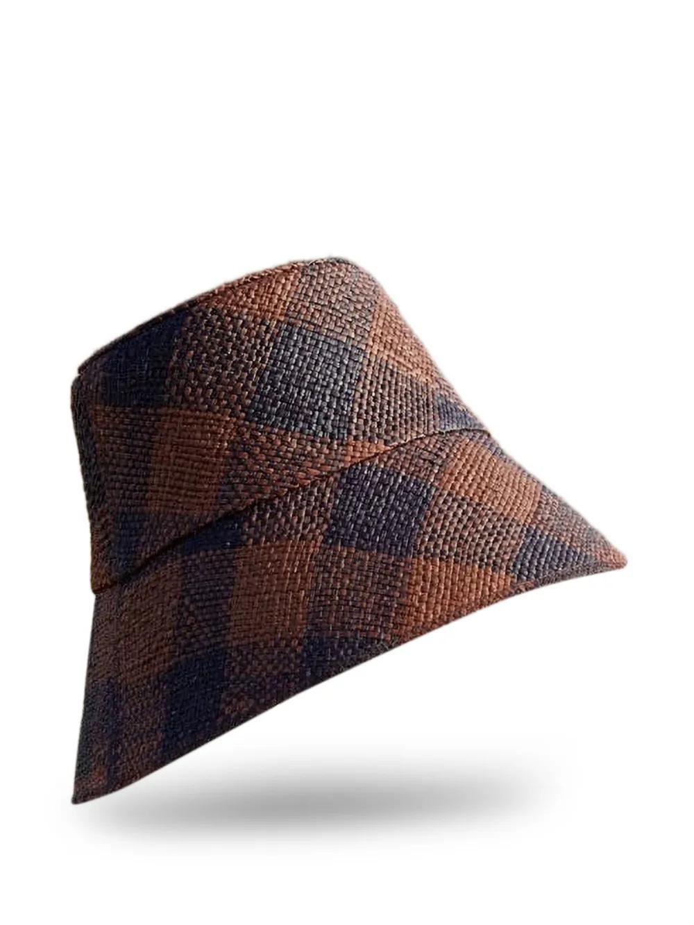 Johanna Ortiz Heaven And Earth checked hat - Brown