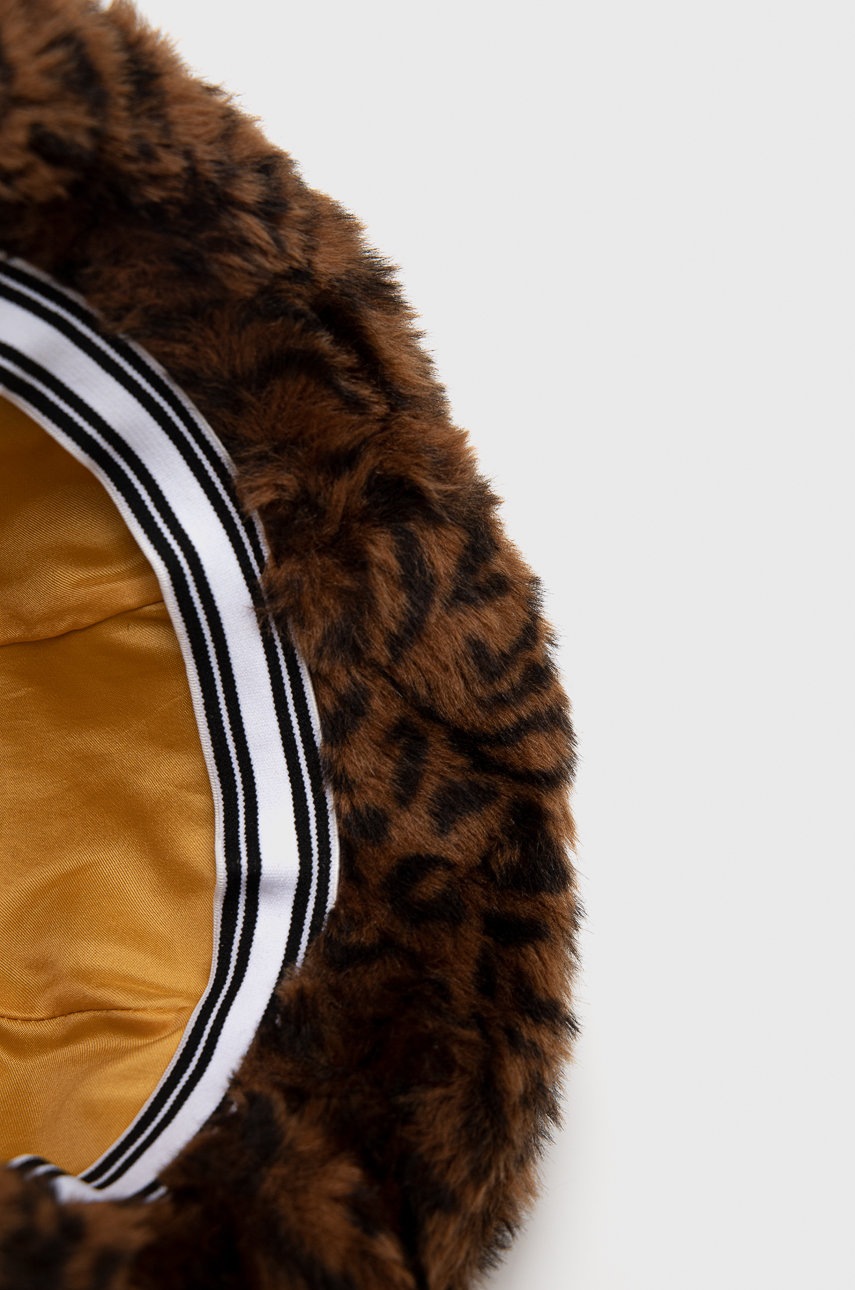 light brown camel hair felted finish gold-tone logo lettering dropped narrow brim full lining