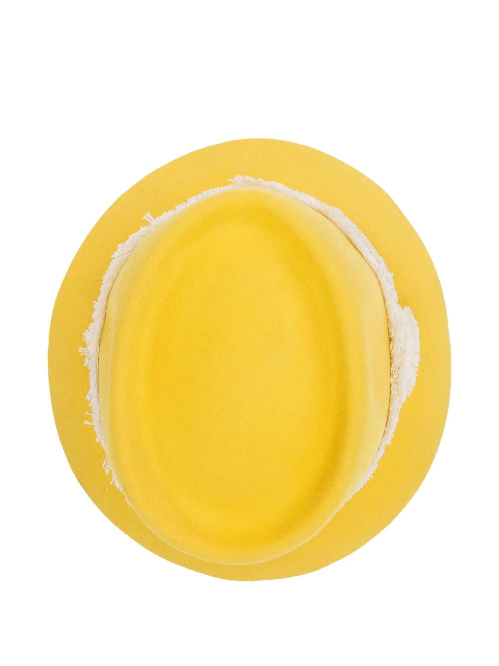 banana yellow dropped narrow brim concave crown satin trim fringed edge