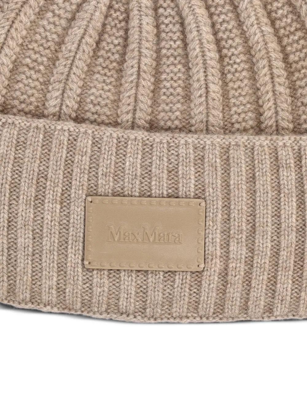 beige cashmere felted finish logo patch curved peak adjustable back strap