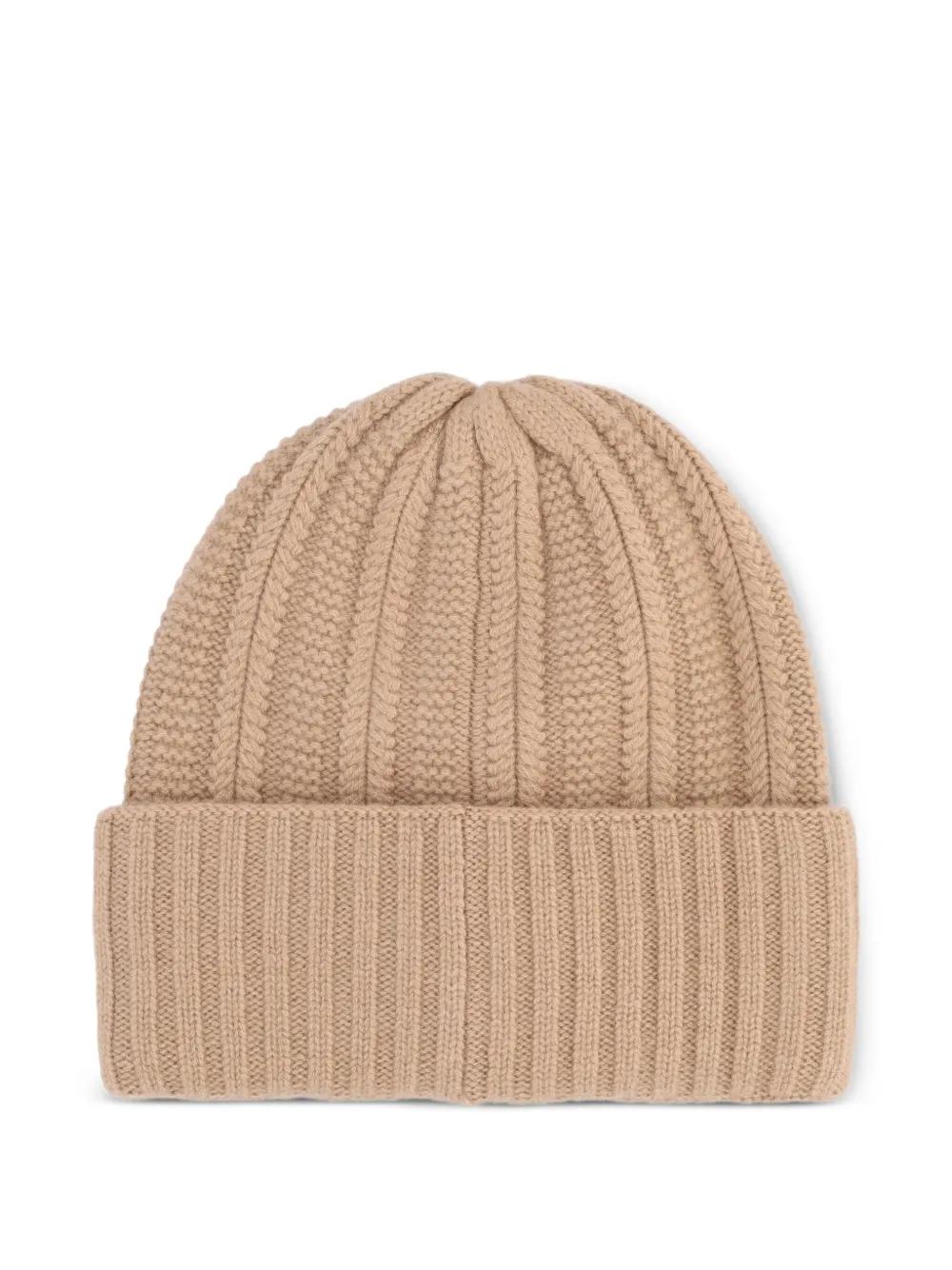 beige cashmere felted finish logo patch curved peak adjustable back strap