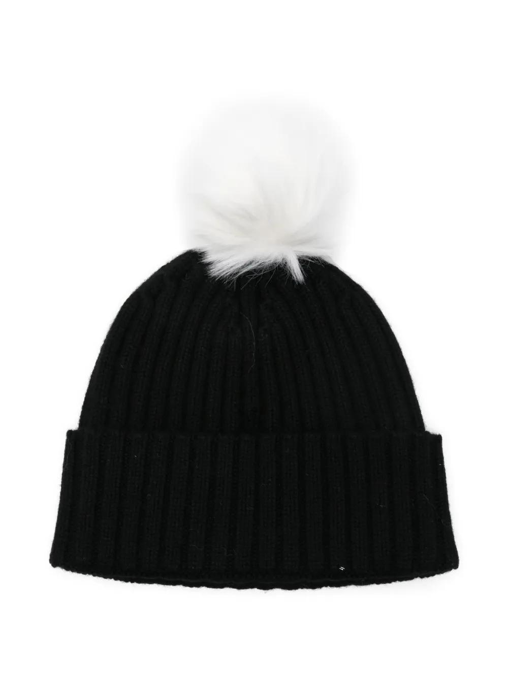 black embroidered pompom detail ribbed knit