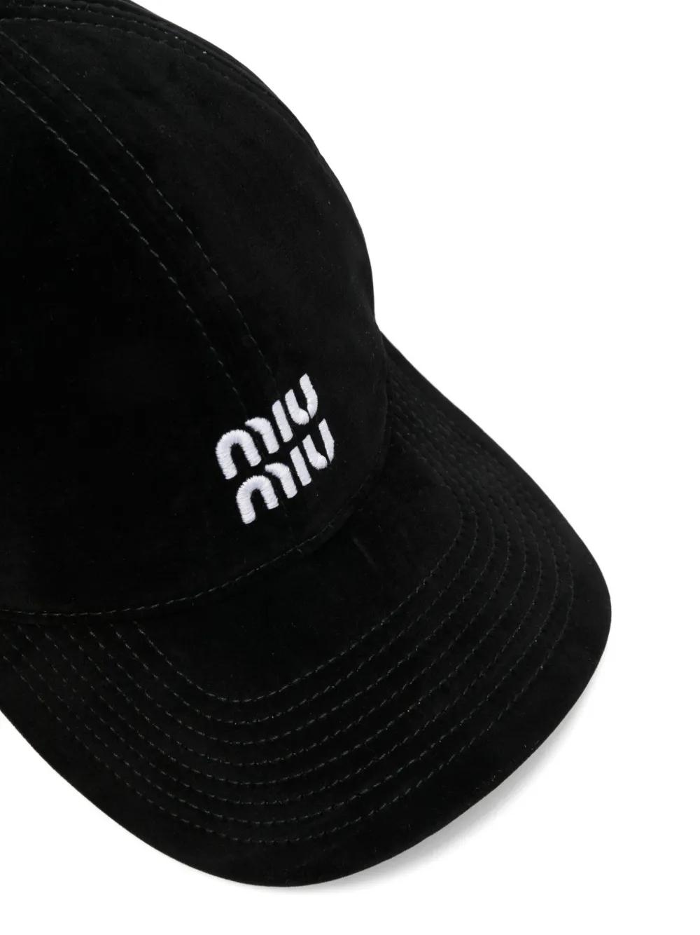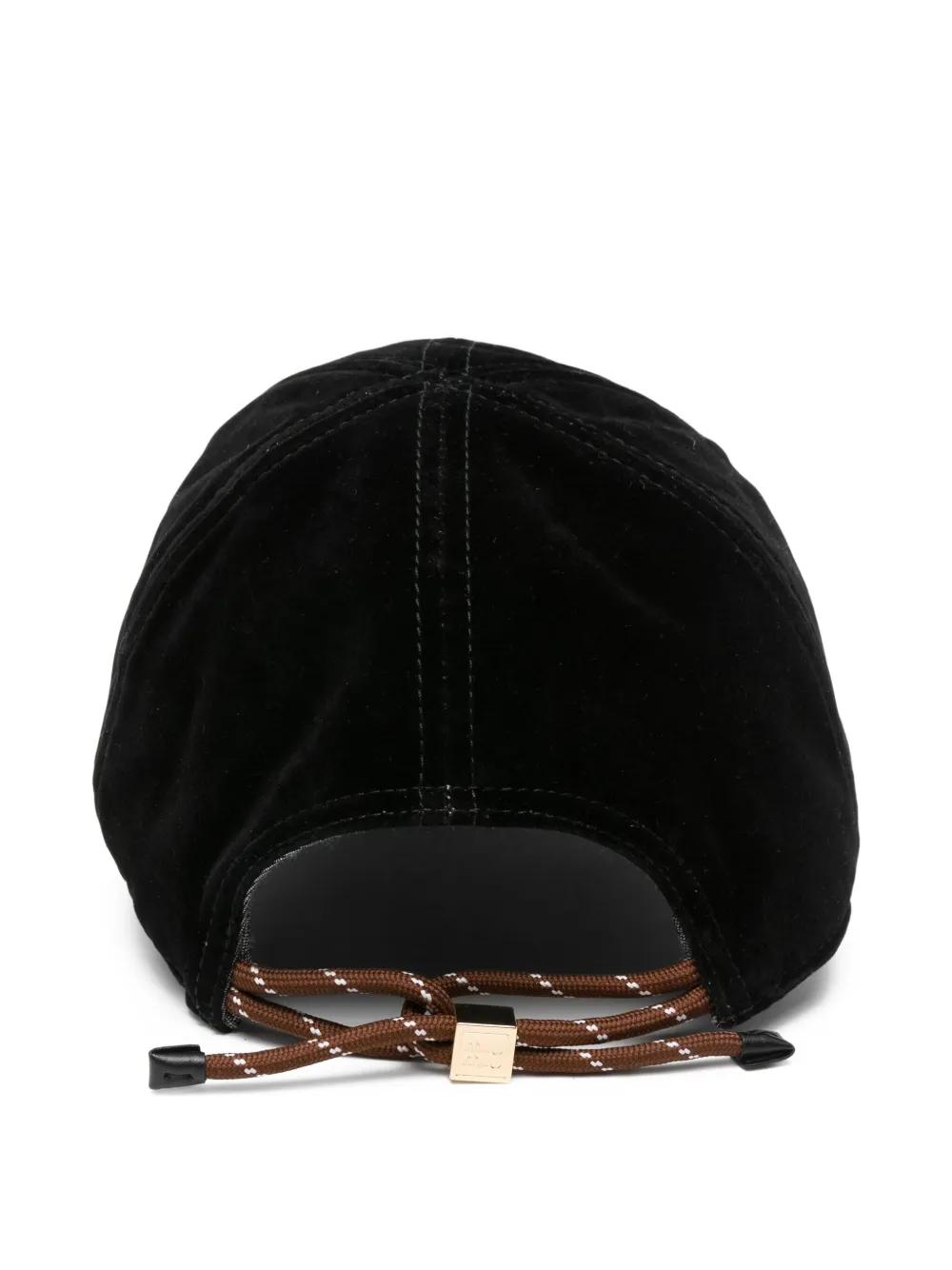 black cotton six-panel construction embroidered logo tonal stitching sliding-knot adjustable strap curved peak curved brim