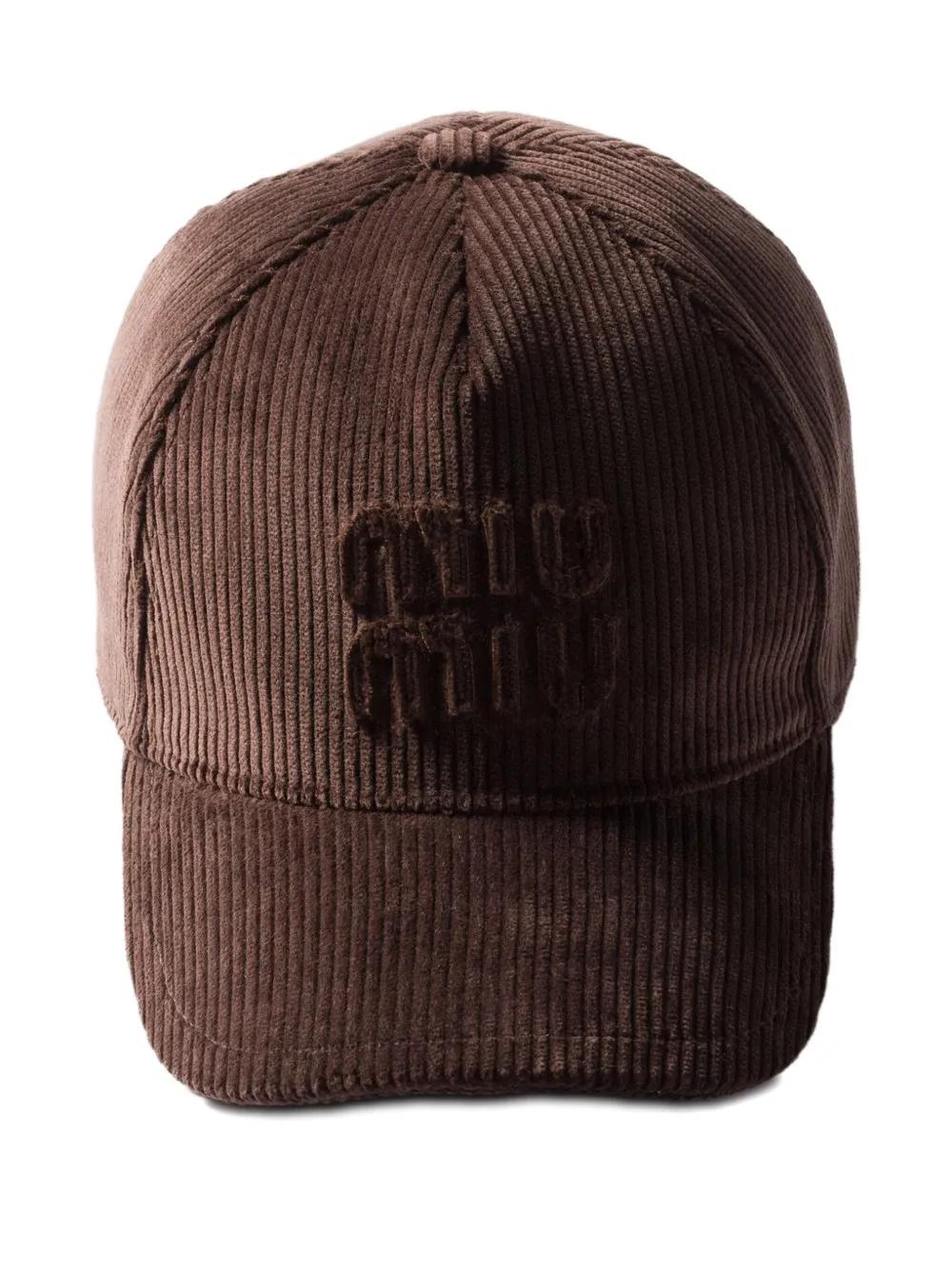 Miu Miu logo-patch corduroy baseball cap - Brown