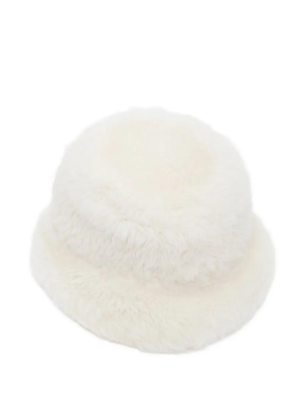 cream beige structured silhouette dual-row shearling trim embroidered logo detail wide brim soft interior lining