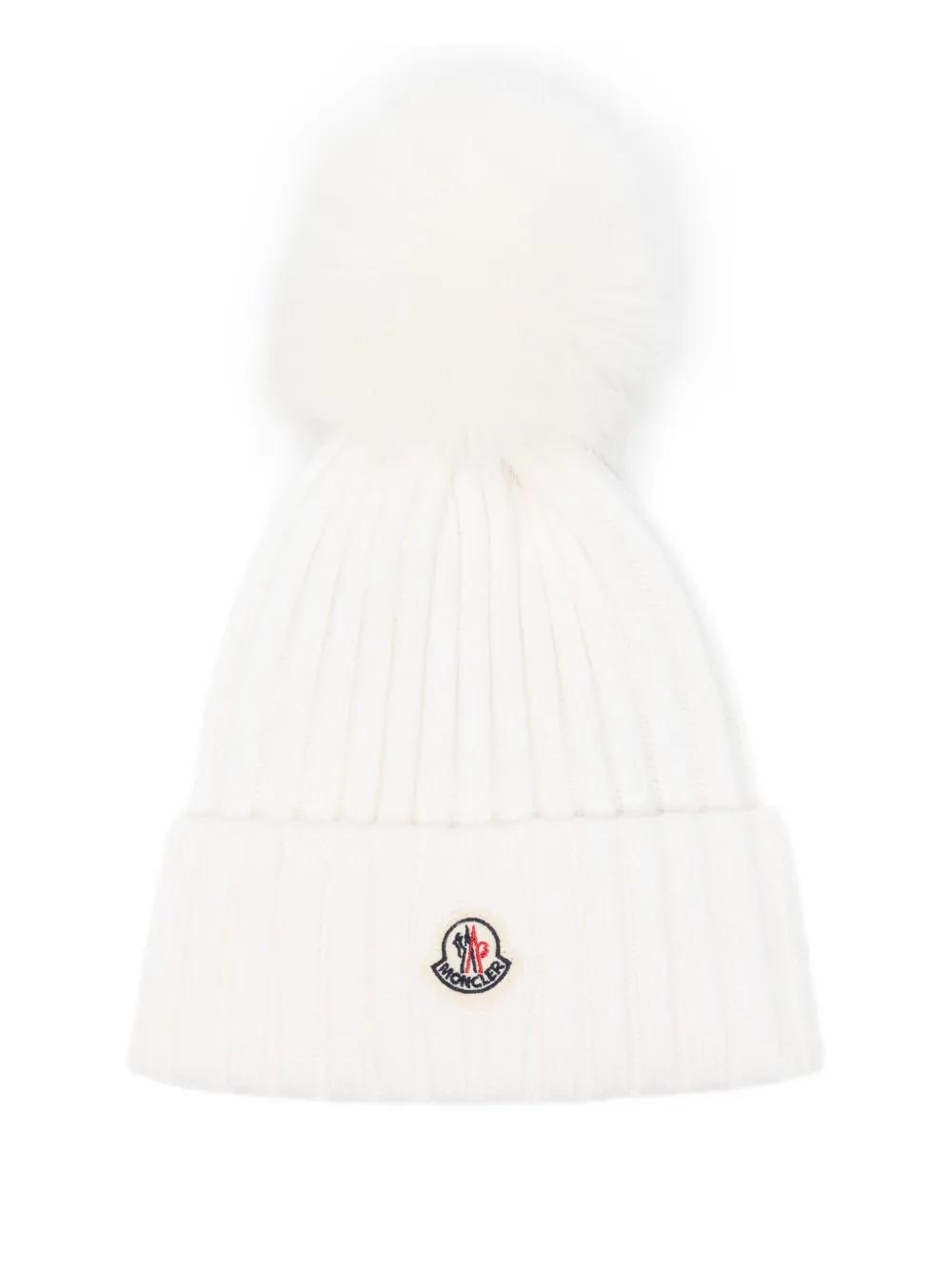 Moncler ribbed pom-pom hat - White