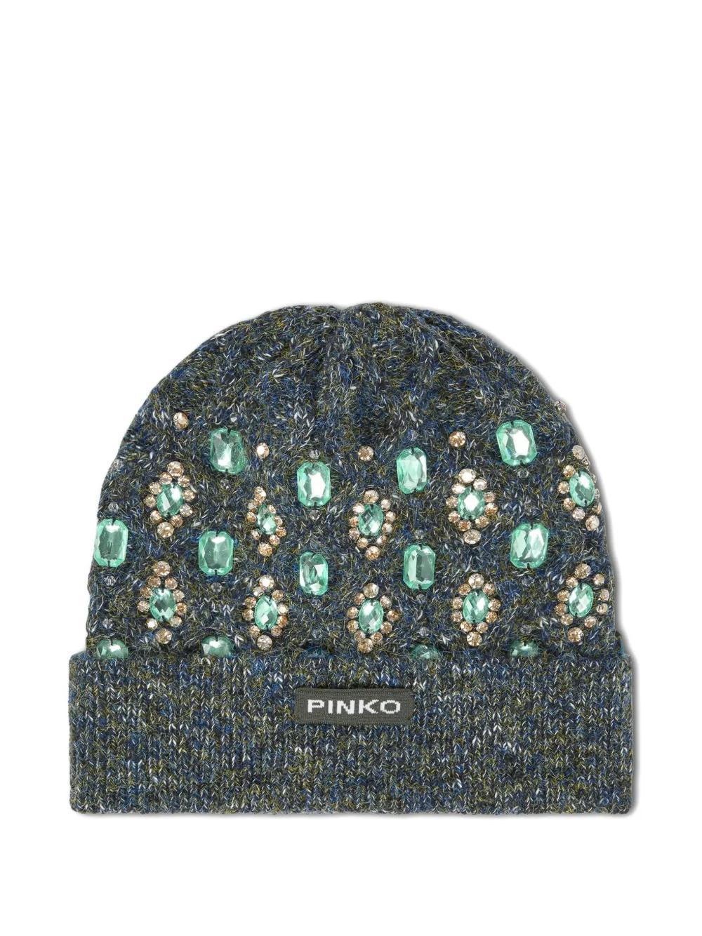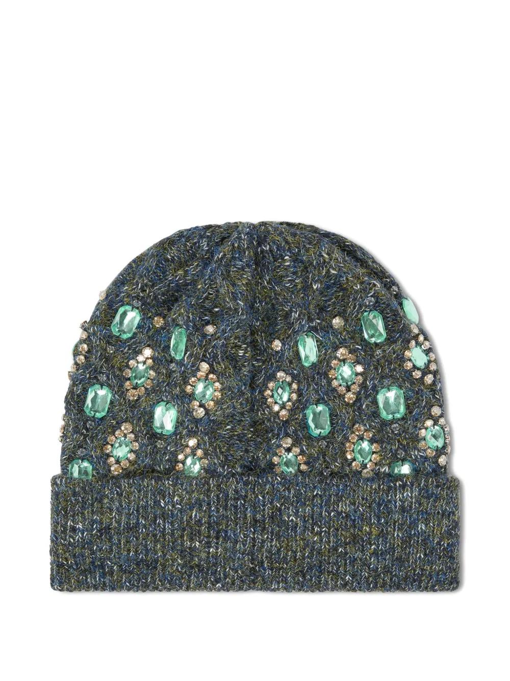 dark grey stone embellishments knit texture ribbed brim folded cuff