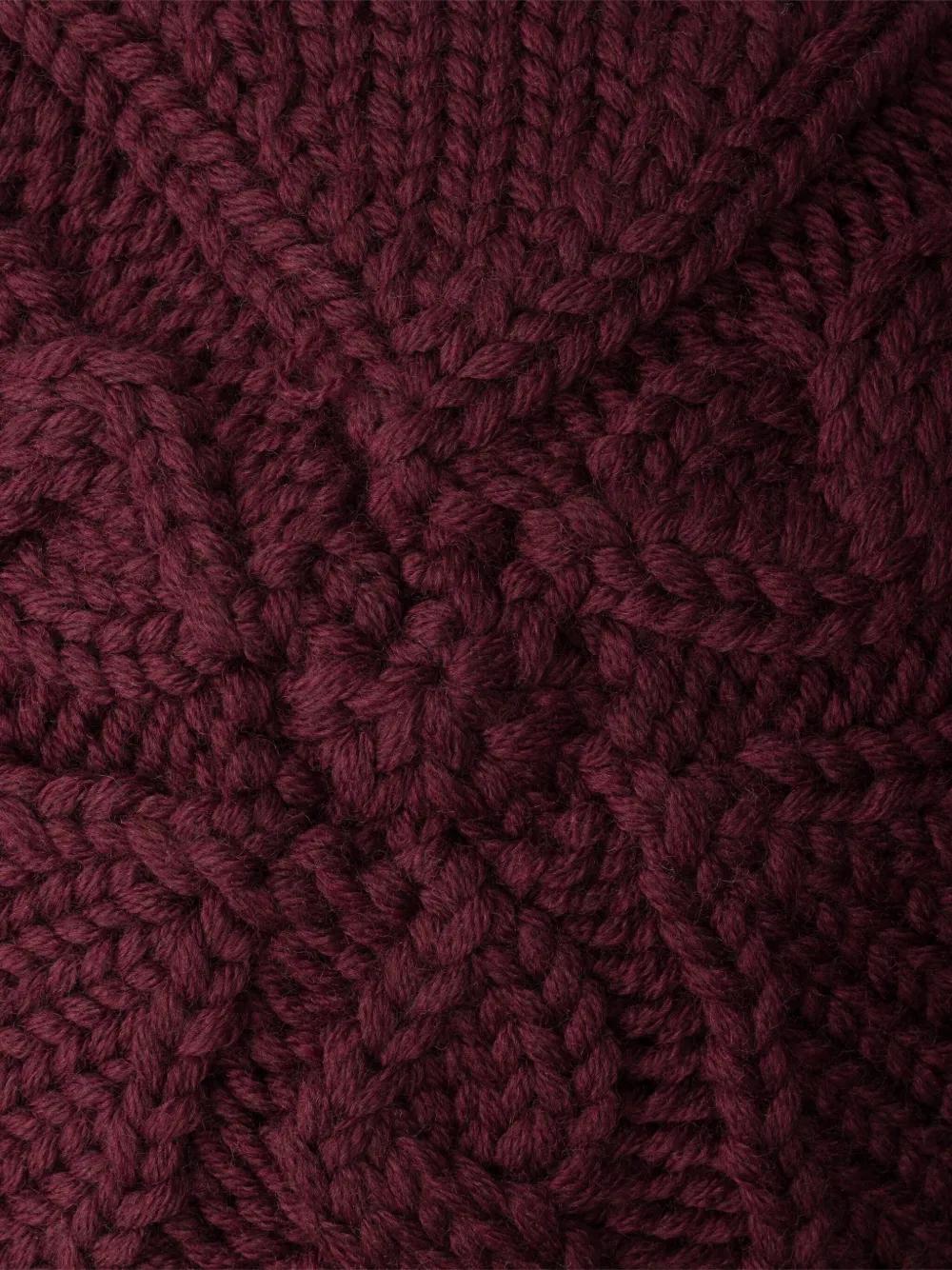 burgundy cable knit enamel metal triangle logo bucket shape