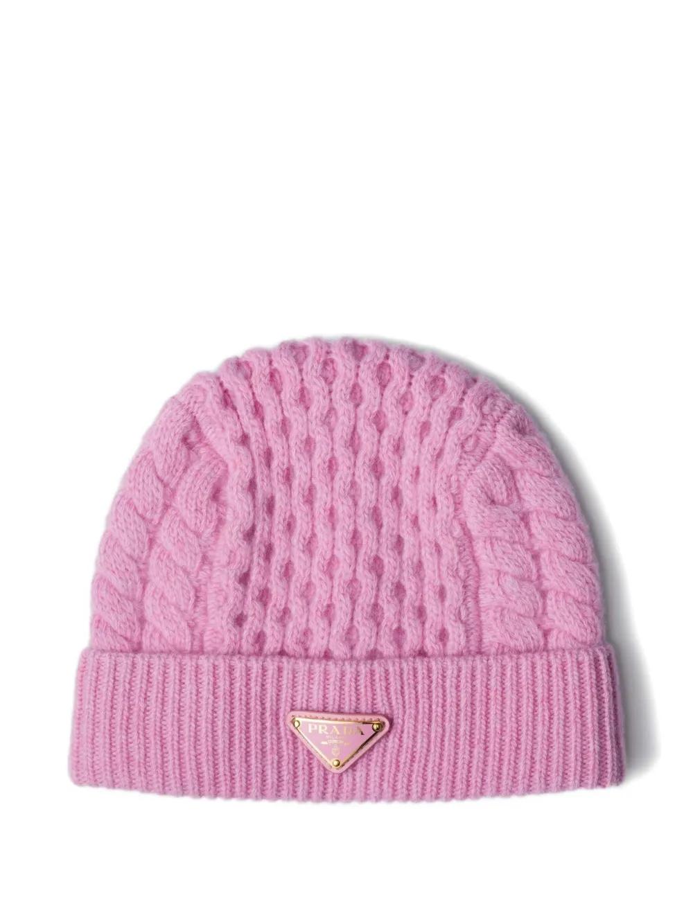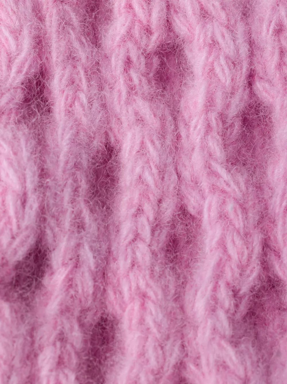 pink cable knit textured pattern triangle logo enamelled metal wool fabric