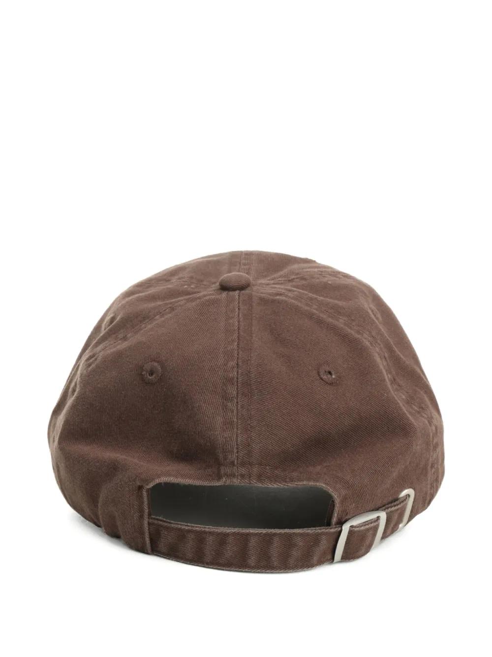 brown logo embroidery top button adjustable strap metal buckle curved peak