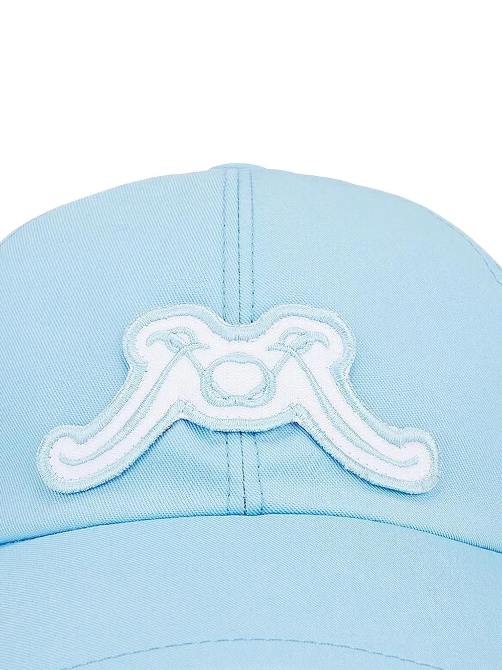 sky blue adjustable strap to the rear curved peak fabric-covered button at the crown