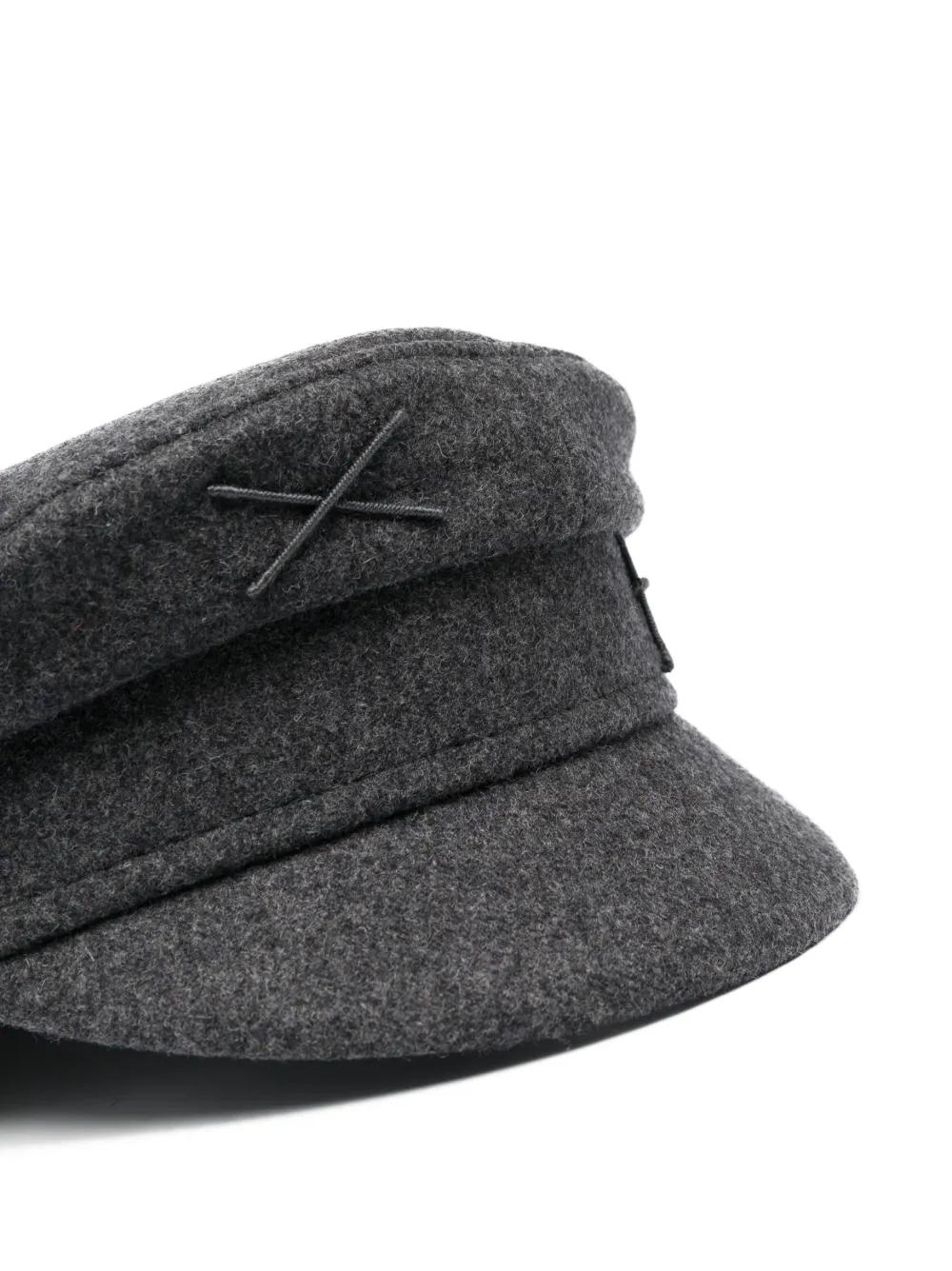 ash grey cotton/wool blend embroidered logo to the front curved peak pull-on style