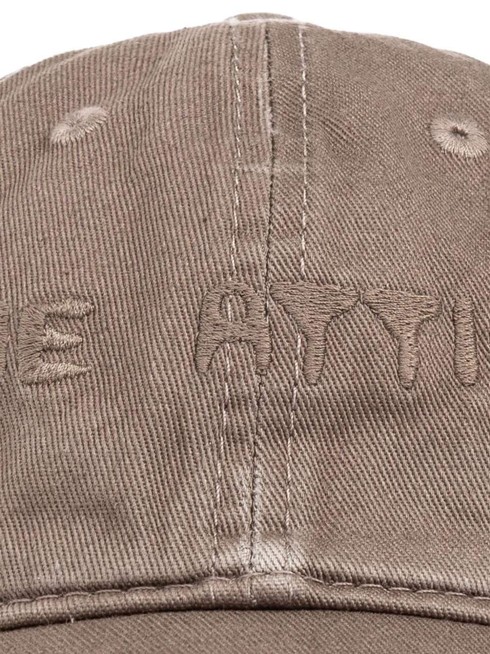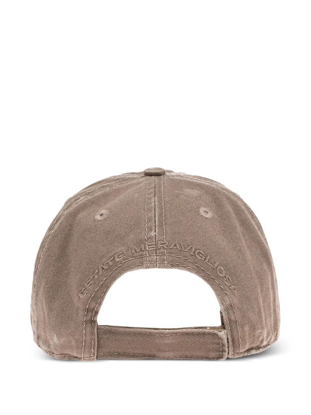 beige adjustable strap to the rear six-panel construction curved peak eyelet detailing