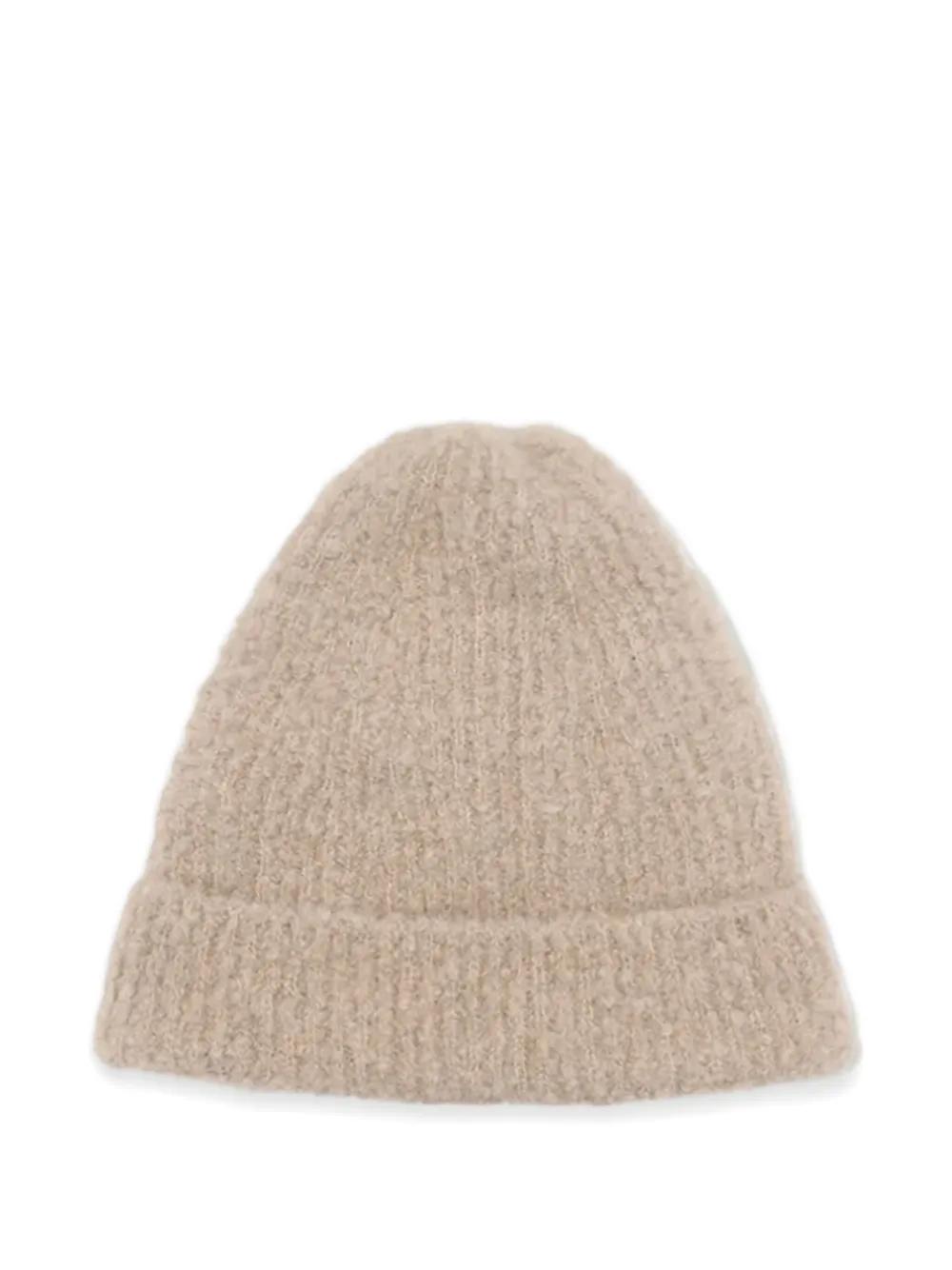 beige cashmere ribbed texture fold-over brim slouchy crown