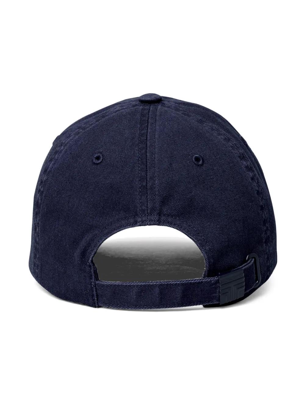 navy blue cotton embroidered logo to the front eyelet detailing curved peak adjustable strap to the rear