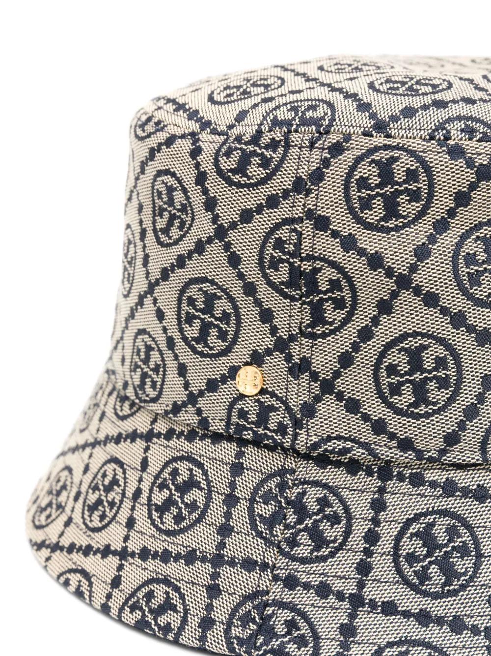 navy blue cotton-linen blend flat crown dropped wide brim jacquard logo motif gold-tone logo plaque
