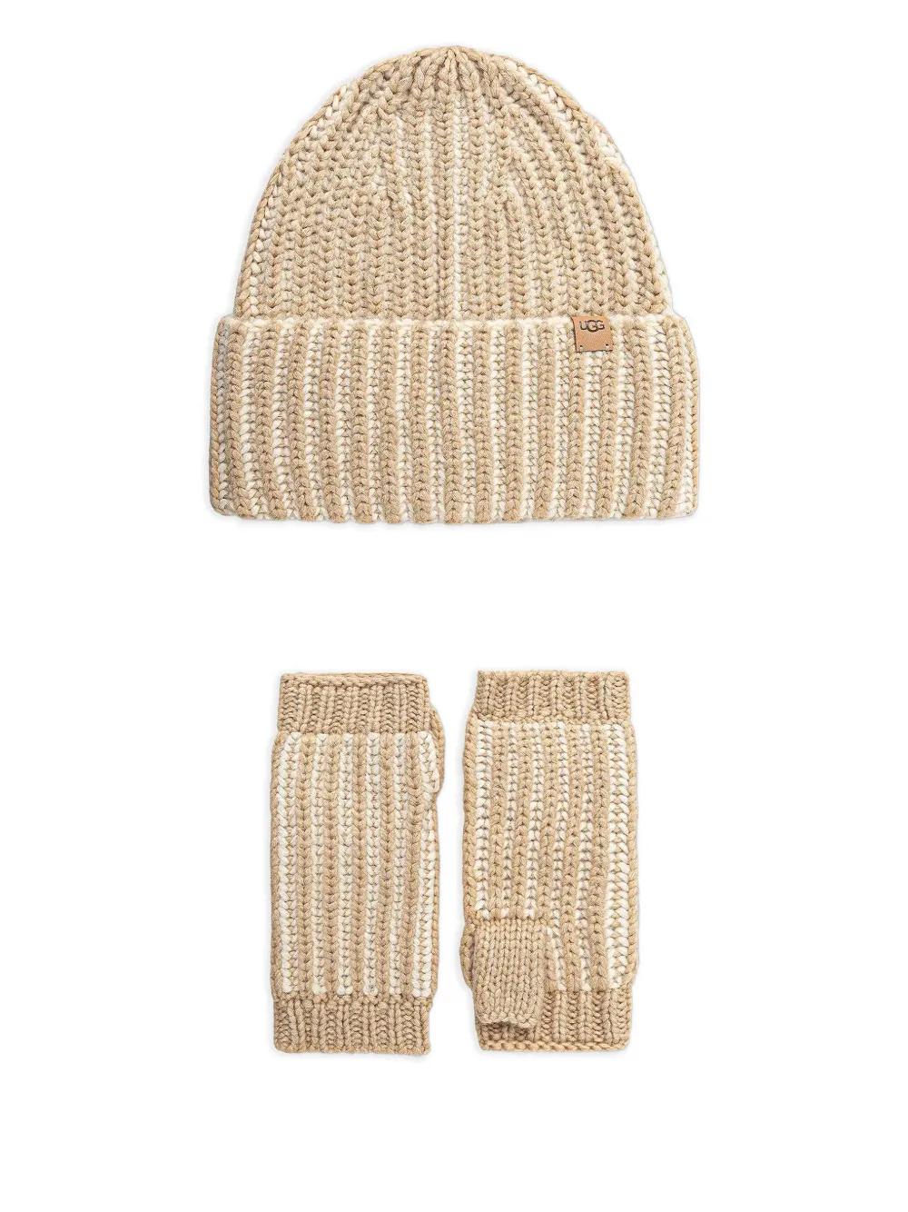 UGG ribbed logo-patch beanie set - Neutrals