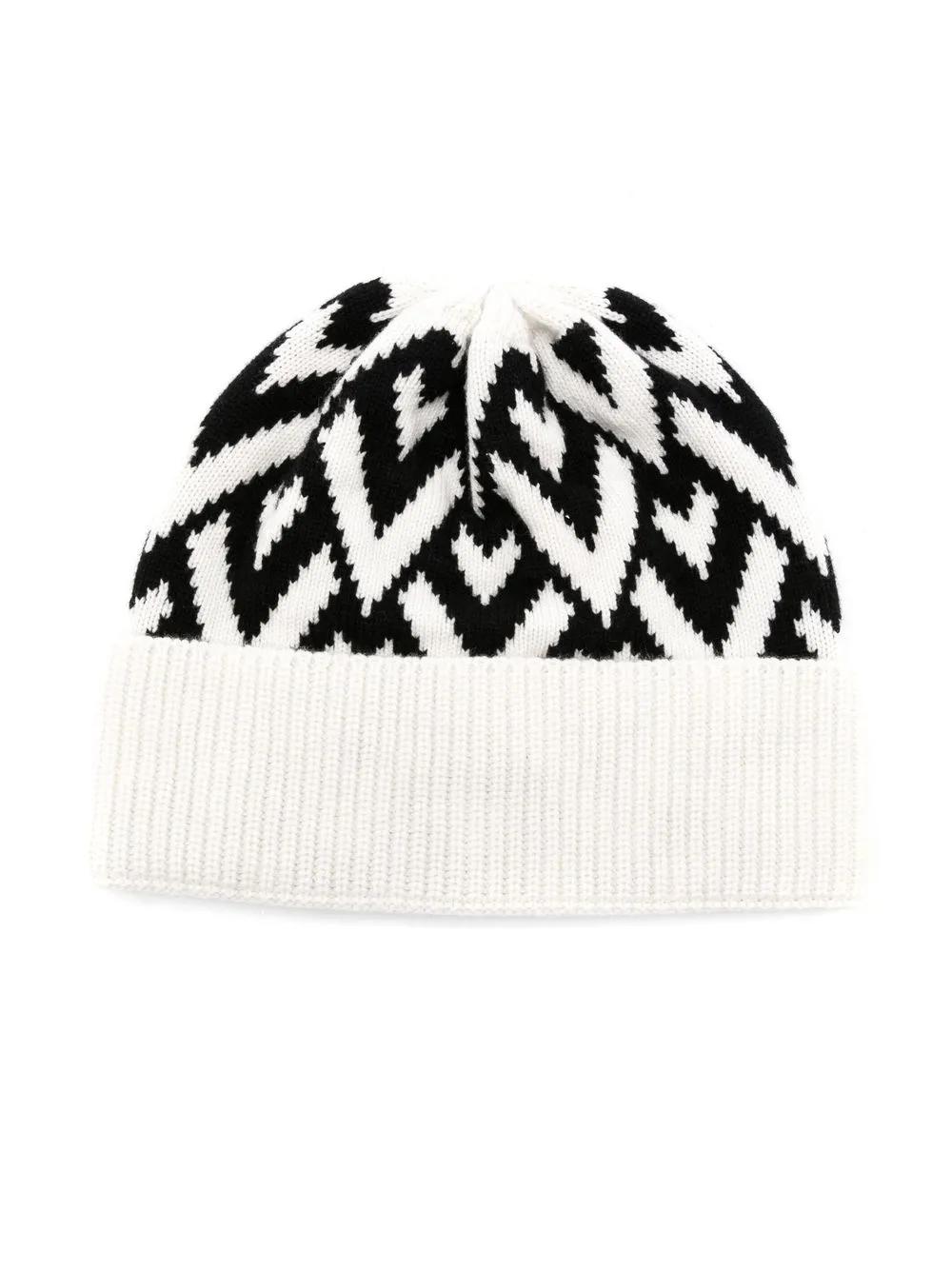 black/white wool intarsia-knit logo ribbed-knit edge turn-up brim