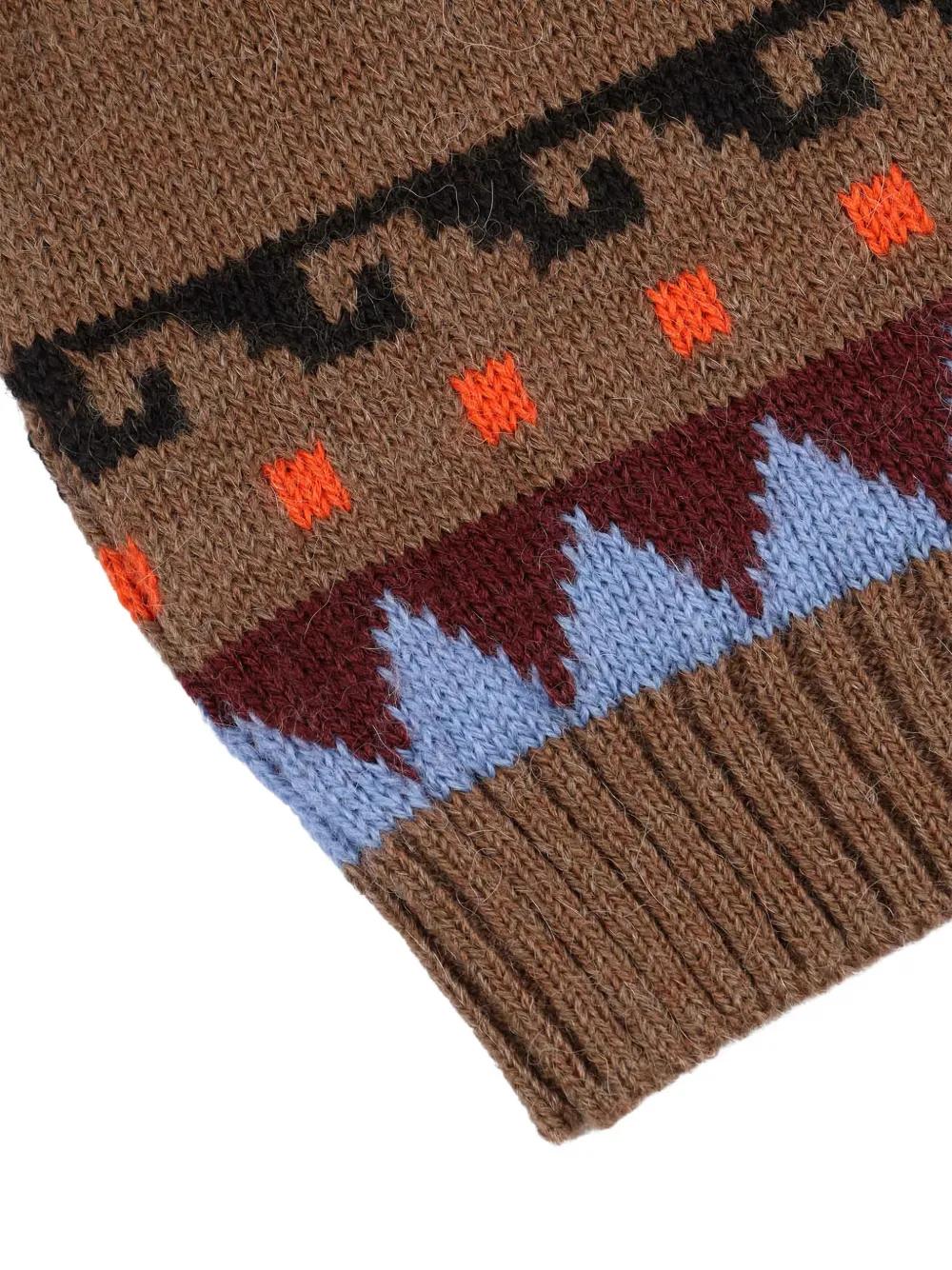 orange alpaca motif geometric pattern animal motif ribbed brim