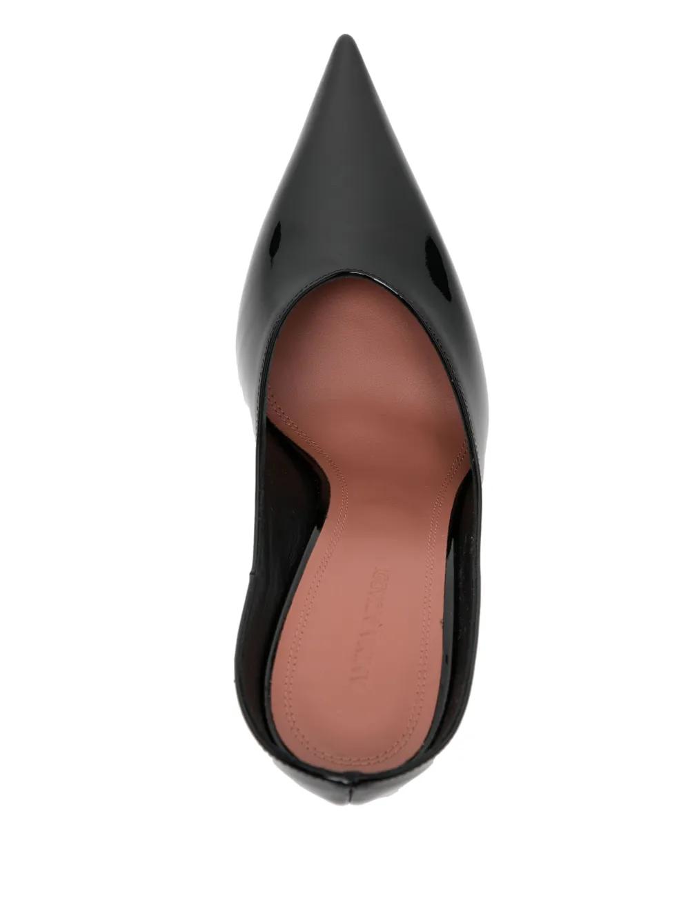 black patent leather 100mm high stiletto heel crystal embellishment pointed toe low vamp branded insole Wardrobe Icon