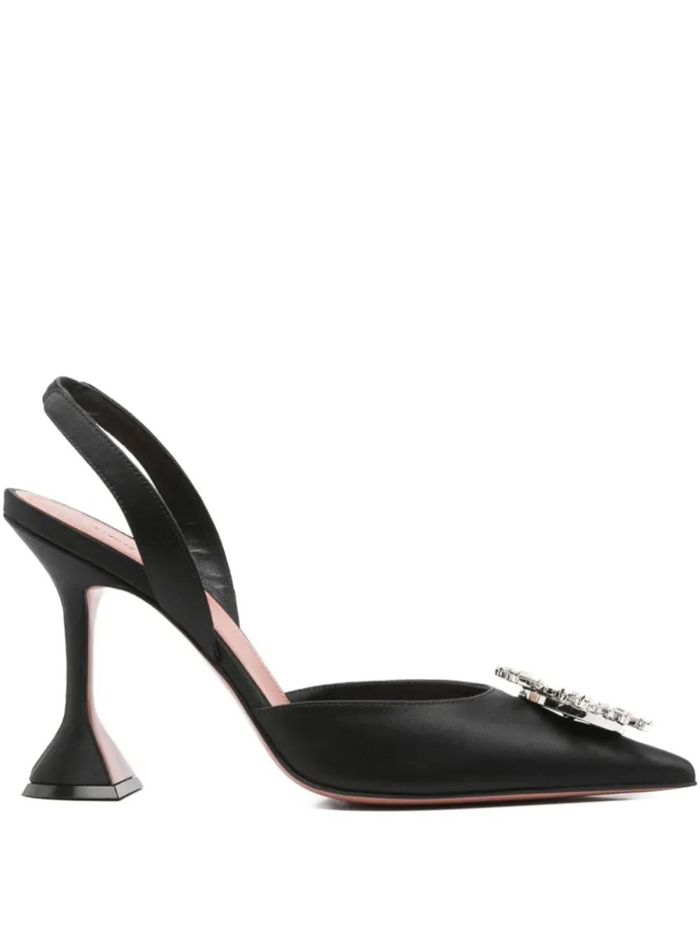 black crystal embellishment slingback strap pointed toe 95mm heel branded insole