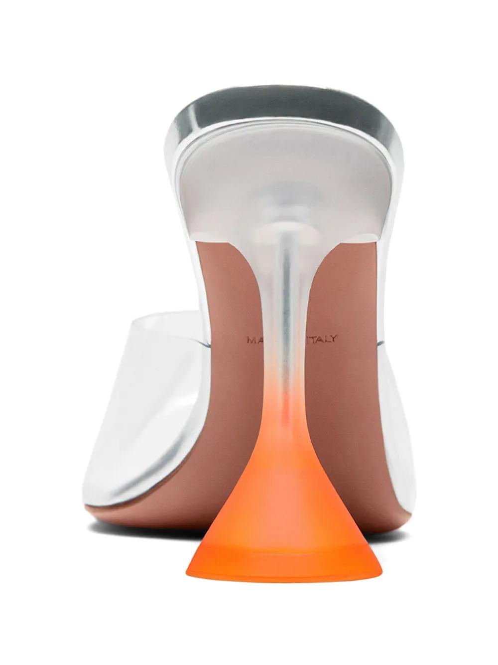 orange leather transparent design ombré effect open toe single toe strap branded insole slip-on style high sculpted heel