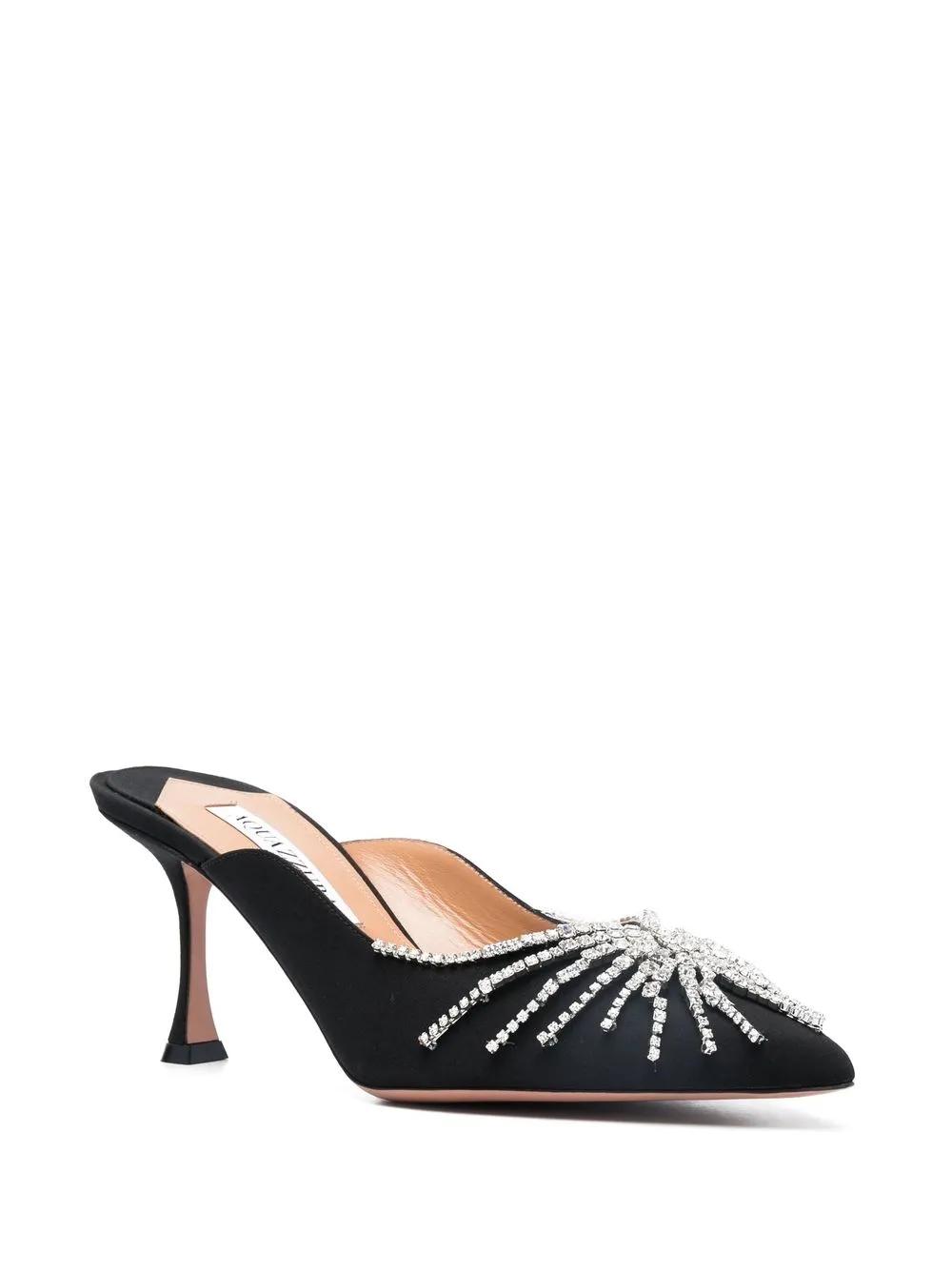 black calf leather satin finish crystal embellishment pointed toe branded leather insole backless 75mm sculpted heel