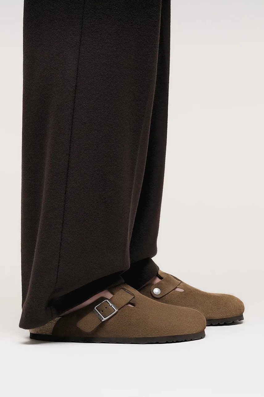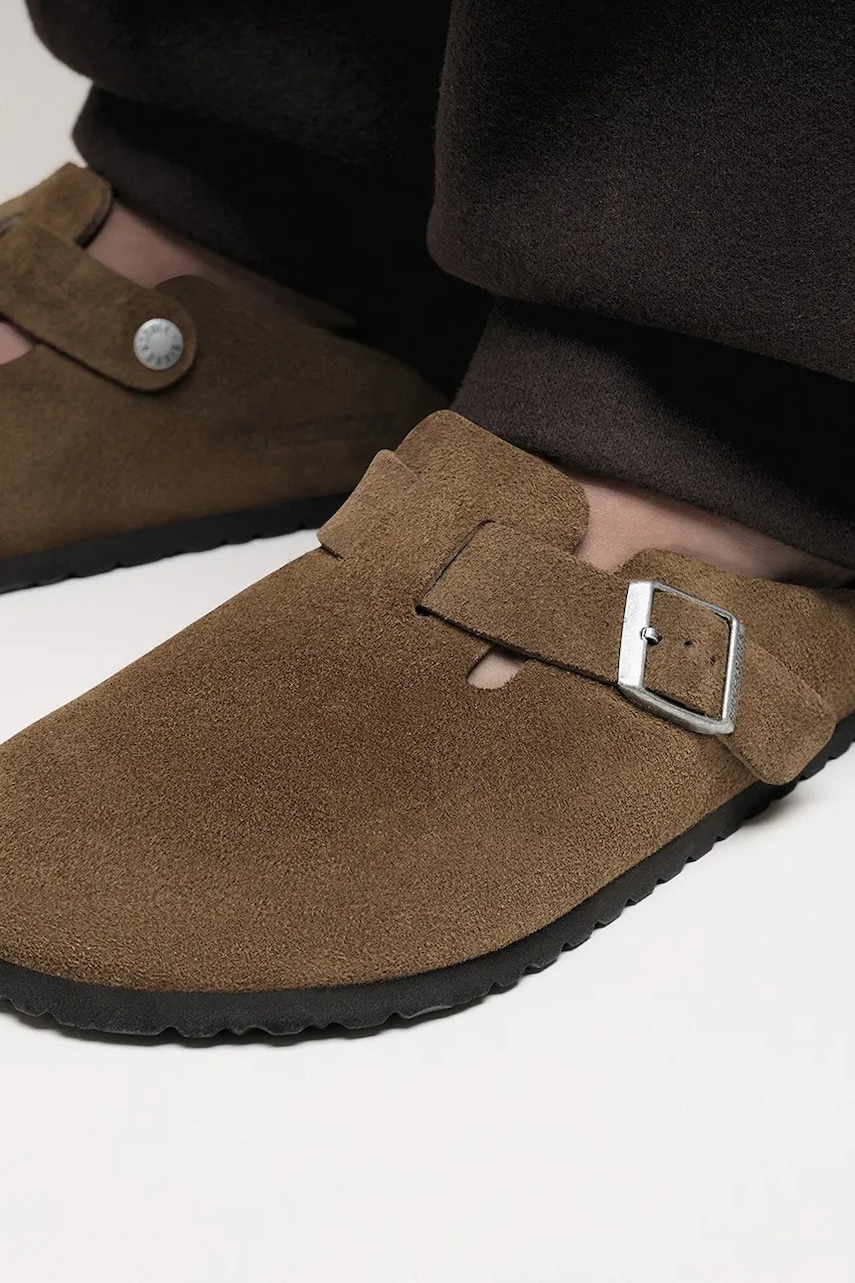 Birkenstock klapki zamszowe Boston kolor brązowy 1030814