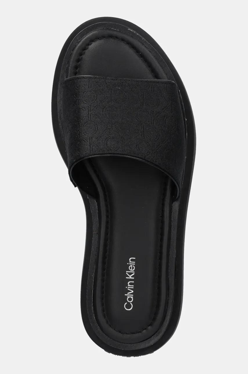 Calvin Klein klapki FLATFORM SLIDE - JACQ damskie kolor czarny na platformie HW0HW02461