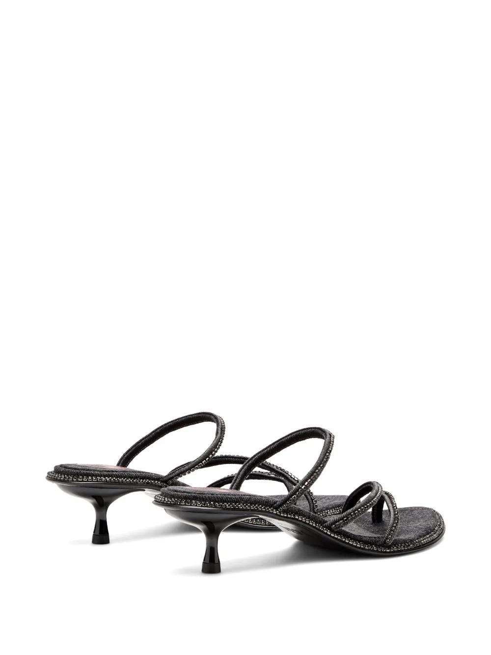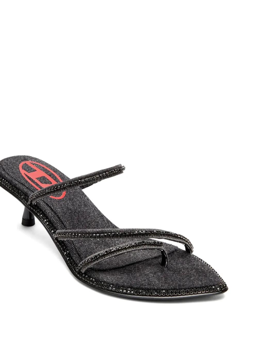 black cotton denim kitten heel strap detailing pointed toe branded insole