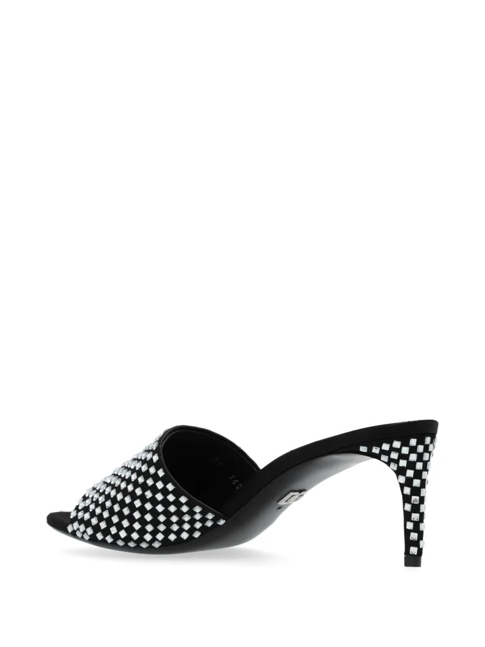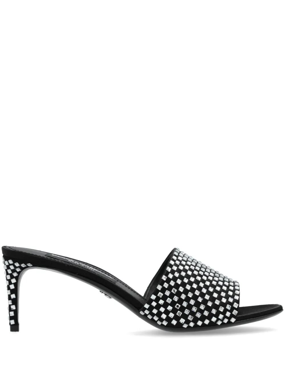 black silk satin open toe branded insole rhinestone embellishment leather sole