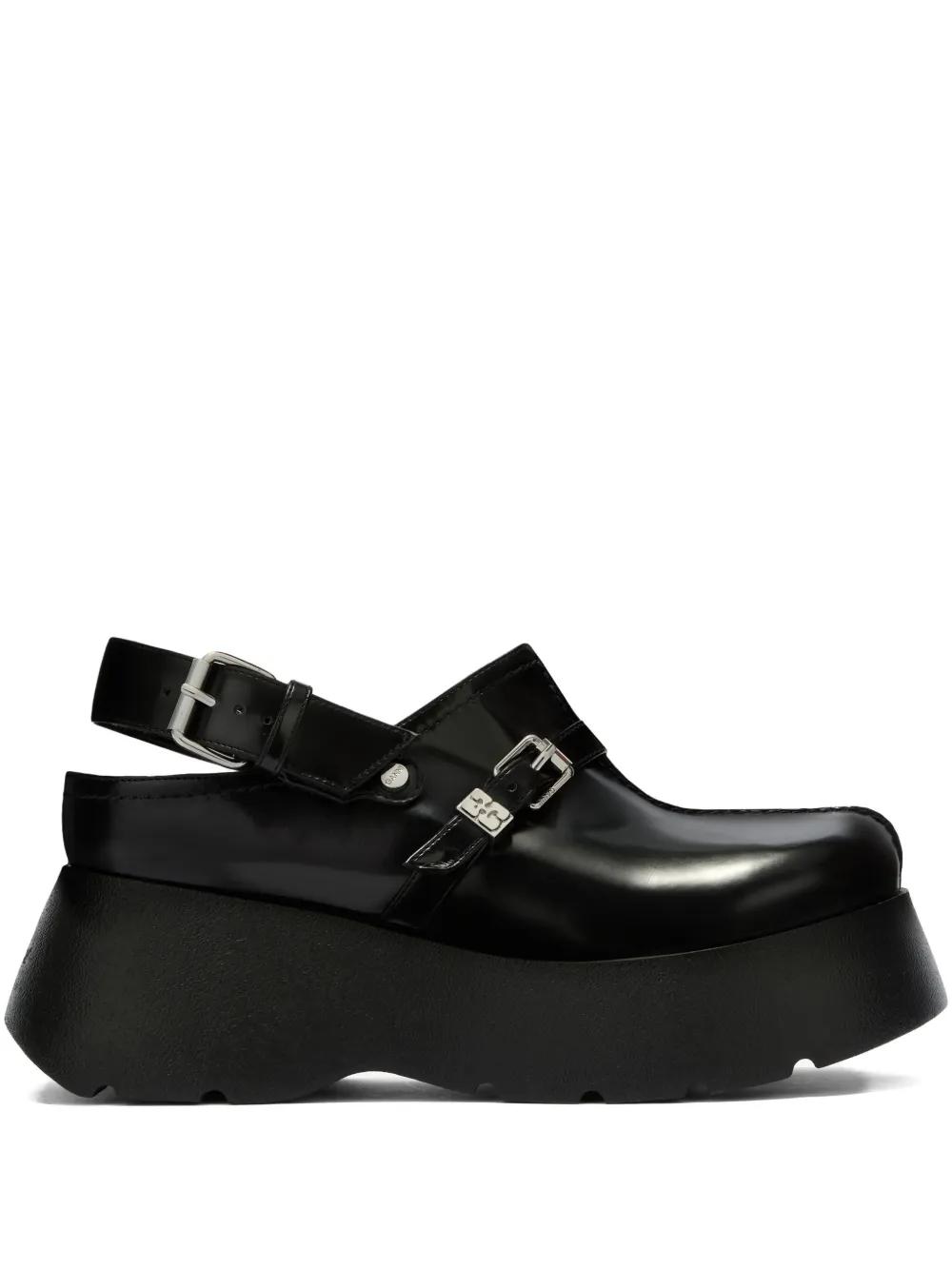 black buckle fastening platform sole slingback strap